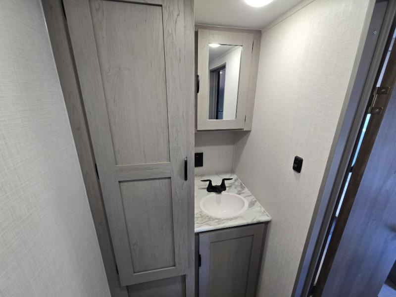 Enjoy every camping experience in this Clipper 3K Series trailer featuring a full rear bath including a 24" x 36" shower, toilet, and sink with overhead linen cabinet. The queen bed up front will offer you a great night's sleep, and you will find ample storage for clothing in the bedside wardrobes, nightstands, and overhead shelf. Meals can easily be prepared using the cooktop, refrigerator and sink, and the booth dinette is a great place to enjoy your meals inside, or maybe you'd enjoy dining outside under the 12' patio awning.