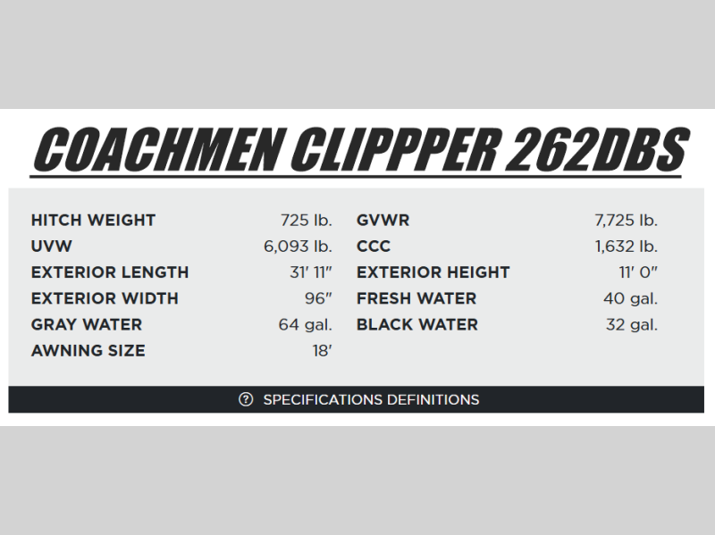 Coachmen RV Clipper 6K Series travel trailer 262BHS highlights:
