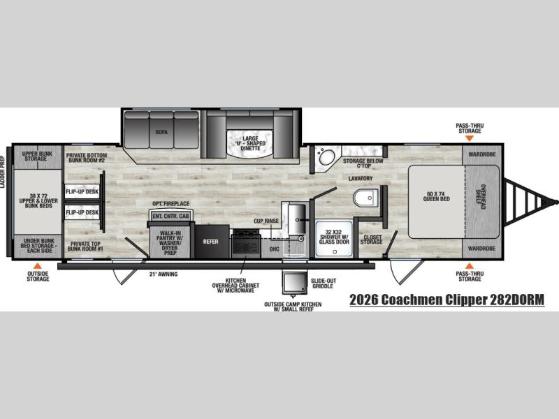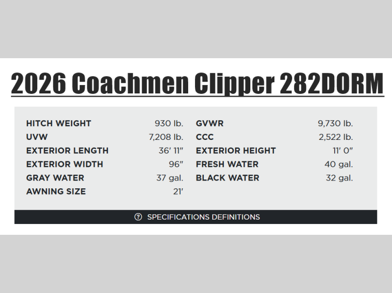 Coachmen RV Clipper 6K Series travel trailer 282DORM highlights: