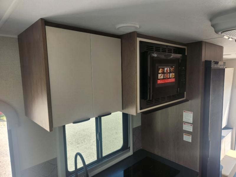 When you enjoy relaxing indoors this coach offers two areas; the rear corner with a double-size Murphy bed, and a J-lounge behind the driver's seat that includes an 18" extension. In the morning, you can prepare eggs and bacon on the two burner induction cooktop, or make instant oatmeal in the microwave oven. The 14' power awning will provide much wanted shade during the day when relaxing outdoors, and the rear corner full bath will allow you to clean up just like you would at home.