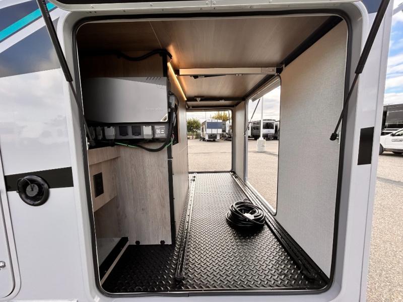 - INTERIOR-FACTORY DASH AM/FM RADIO, SMART 32" COACH TV W/REMOVABLE BRACKET, 400AH LITHIUM BATTERY, 3000 WATT INVERTER W/REMOTE PANEL & BATTERY METER, EXT SOLAR PANEL PLUG IN, ROOF SOLAR PREP, WINDOW SHADES, CONVECTION MICROWAVE,2