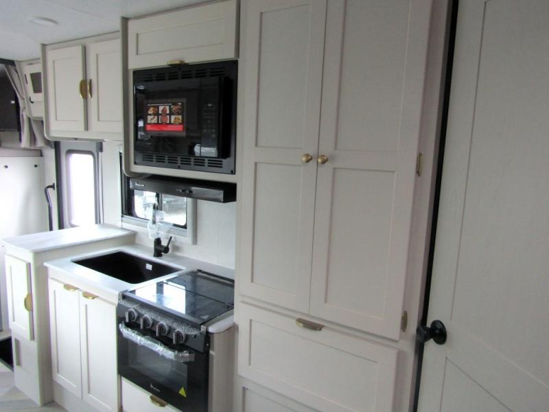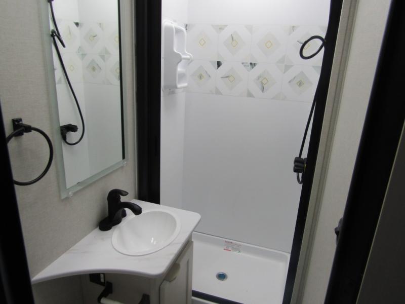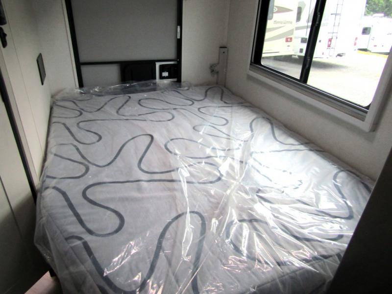 Starting traveling in comfort with this motorhome! It features a rear corner queen bed to lay your head on at night and is conveniently next to the rear corner bathroom which will come in handy at night. There is also a 39" x 95" bunk over cab for sleeping or storage. You could even transform the 44" x 76" J-lounge into an extra sleeping space when you aren't using it to enjoy a meal or play a card game. Speaking of meals, you can easily cook your meals with the three burner cooktop and store any leftovers in the refrigerator. Wind down your nights by watching a movie with the swing-arm TV or set up a chair underneath the 15' power awning!