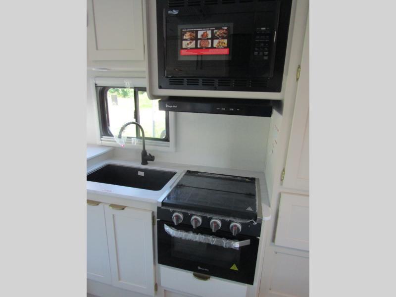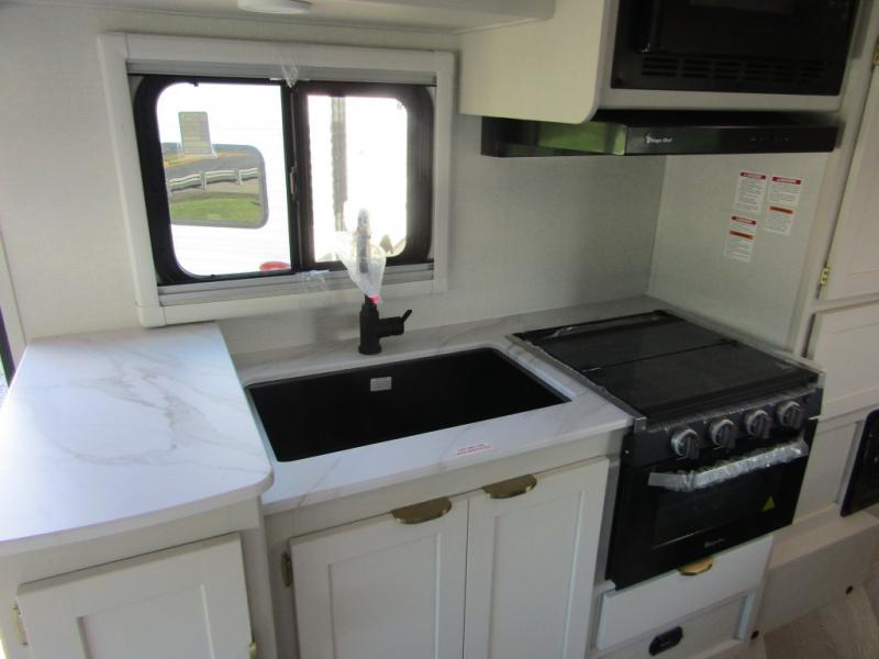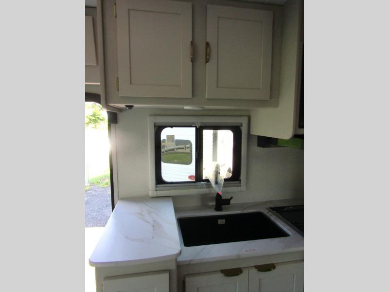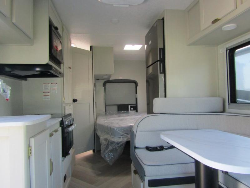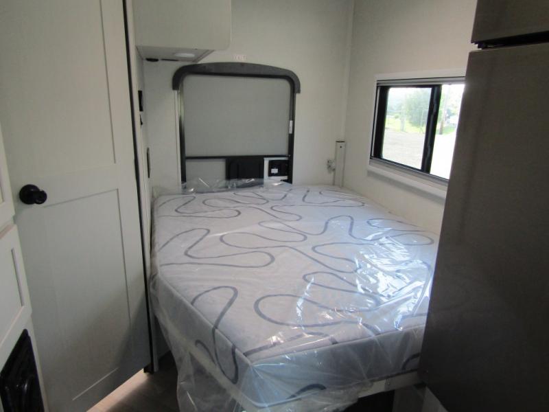 Starting traveling in comfort with this motorhome! It features a rear corner queen bed to lay your head on at night and is conveniently next to the rear corner bathroom which will come in handy at night. There is also a 39" x 95" bunk over cab for sleeping or storage. You could even transform the 44" x 76" J-lounge into an extra sleeping space when you aren't using it to enjoy a meal or play a card game. Speaking of meals, you can easily cook your meals with the three burner cooktop and store any leftovers in the refrigerator. Wind down your nights by watching a movie with the swing-arm TV or set up a chair underneath the 15' power awning!