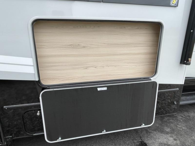 This motorhome has everything you will need for a fun road trip! From the private bedroom with a queen bed slide for more interior space, to the 39" x 95" bunk over cab with a swing-arm TV near it. You can even watch the big game outside if you have added the optional exterior entertainment center protected by the elements under a 20' awning. The rear corner bathroom has a shower to freshen up in and a linen closet to keep your towels nearby. Prepare your best meals with a kitchen area featuring a three burner cooktop, two pantries for dry goods, and a flip-up countertop extension. Enjoy your meals at the 44" x 76" J-lounge with a 18" extension for even more seating space, then relax on the sofa after filling your belly!