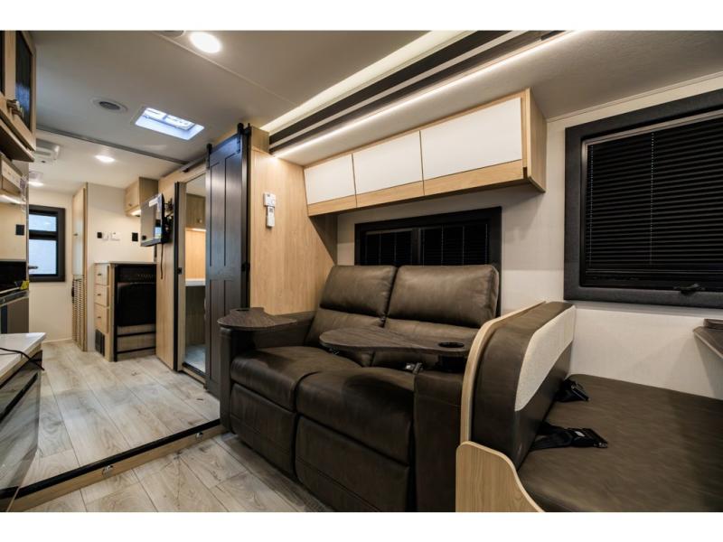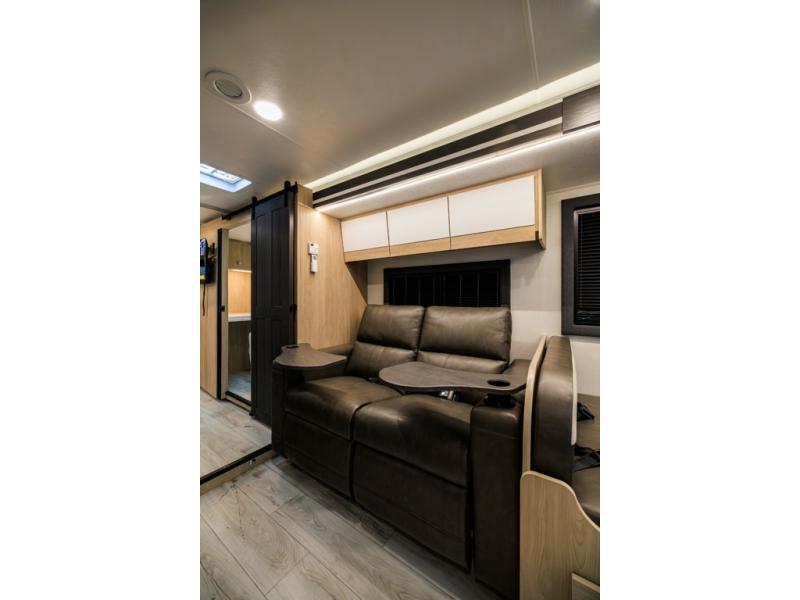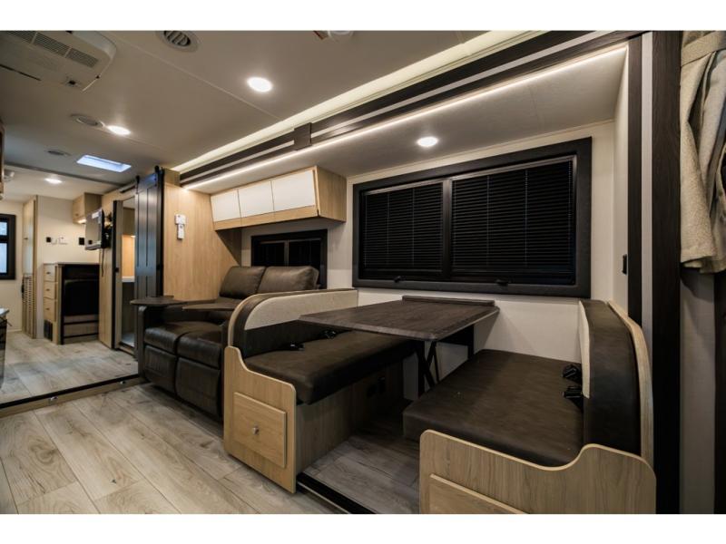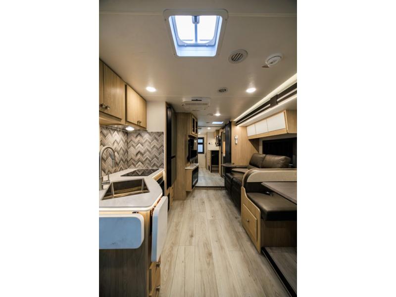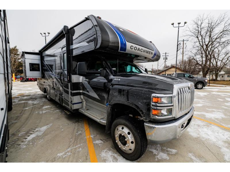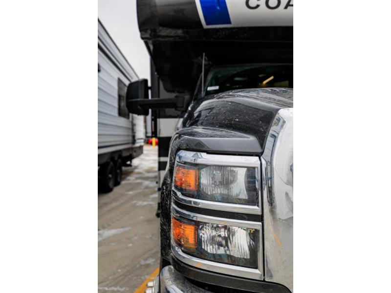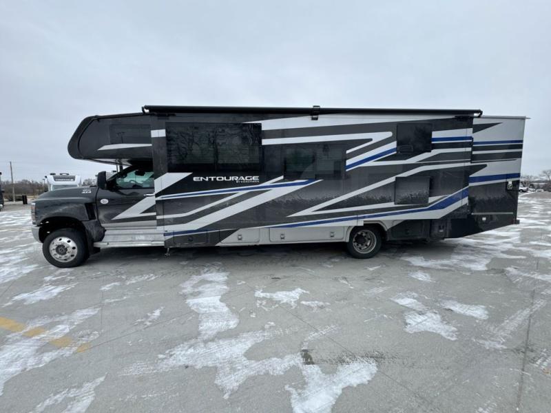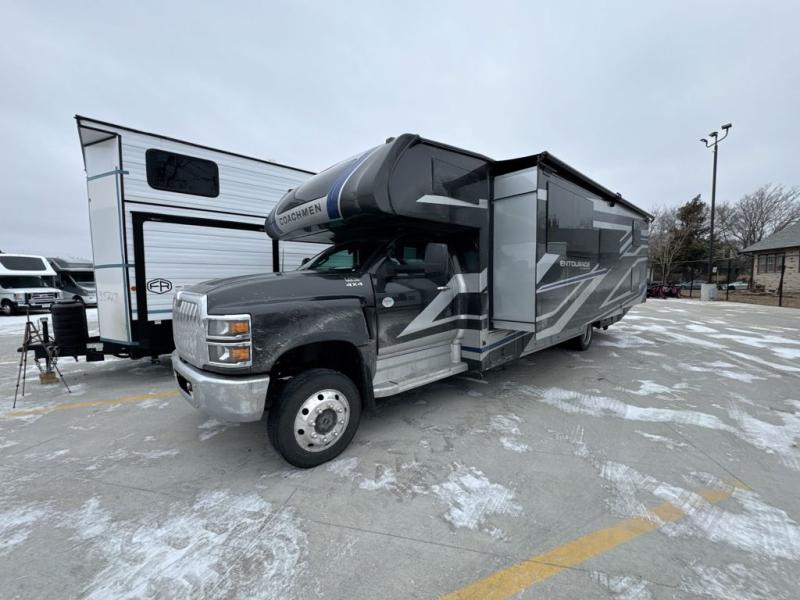 The Entourage is Coachmen's first super C diesel motorhome and it is packed with upscale appointments and solid construction so you can enjoy the RV lifestyle for years to come. This coach features a 4x4 diesel chassis (either a Chevy Silverado 5500 with a V8 6.6L diesel engine, or International CV chassis, depending on the model you choose), plus 50 amp service and a 2,000 watt invertor for all your power needs. The mandatory Icon Package includes a porcelain macerator toilet, auto generator start with dual batteries, 50 amp service, a tankless water heater, and more!