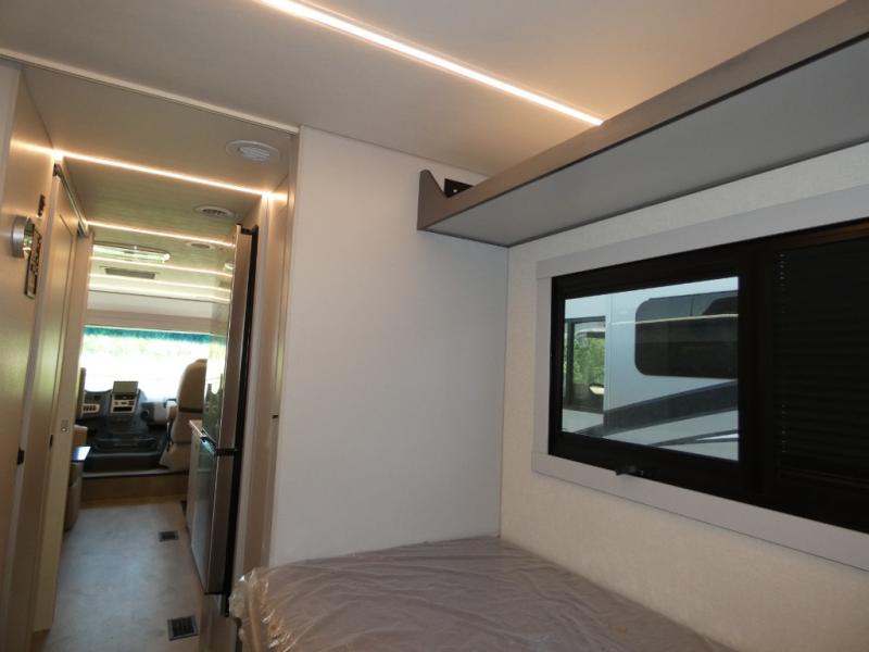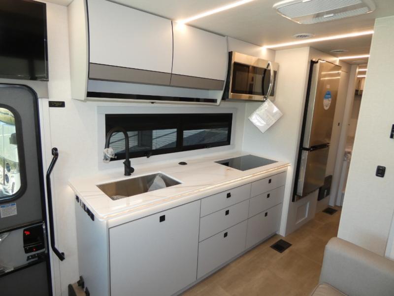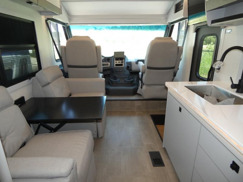 This motorhome was awarded 2025 RV of the Year- Type A Motorhome- Gas by RV News! You will find versatility with the rear twin beds that can convert into a 95" x 74" bed, and recliners/dinette. The chef can prepare their best home cooked meals with the induction cooktop and stainless steel double door refrigerator to keep your perishables fresh. The full bathroom has a 24" x 36" shower with a skylight above for added natural lighting. There are plenty of overhead cabinets throughout for your items to stay out of the way, plus a 32" TV above the entrance door. You even have an exterior 95" x 38" x 37" mega pass-through storage area for your outdoor gear!
