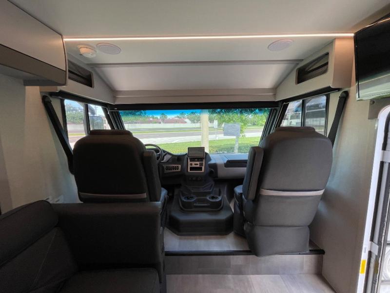 This motorhome was awarded 2025 RV of the Year- Type A Motorhome- Gas by RV News! You will find versatility with the rear twin beds that can convert into a 95" x 74" bed with an optional 32" TV for movies in bed, and a sofa with a sleeper option or you can switch it out for the optional recliners/dinette. The chef can prepare their best home cooked meals with the induction cooktop and stainless steel double door refrigerator to keep your perishables fresh. The full bathroom has a 24" x 36" shower with a skylight above for added natural lighting. There are plenty of overhead cabinets throughout for your items to stay out of the way, plus a 32" TV above the entrance door. You even have an exterior 95" x 38" x 37" mega pass-through storage area for your outdoor gear!