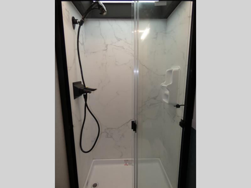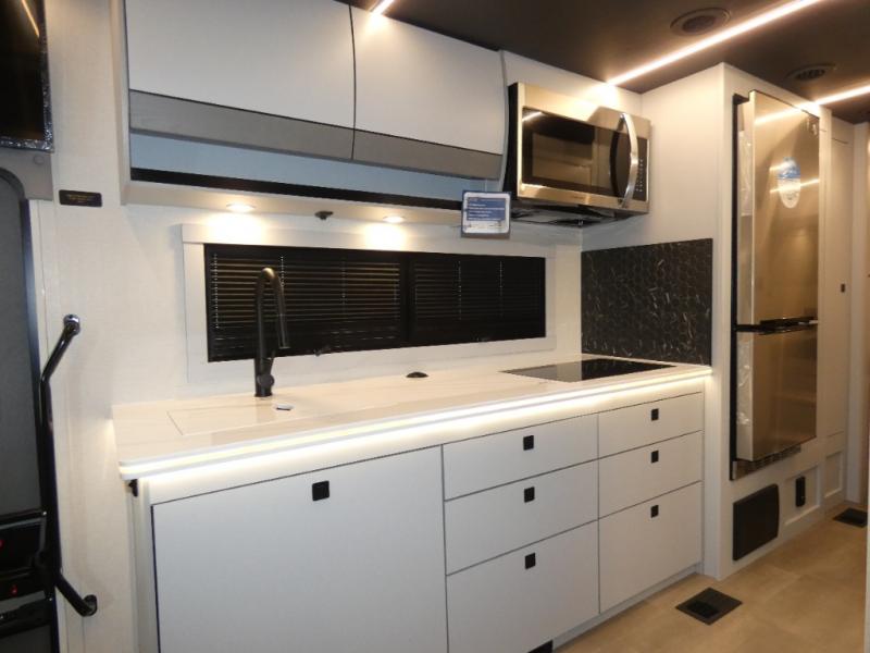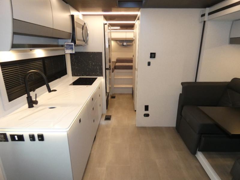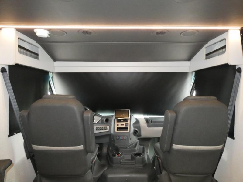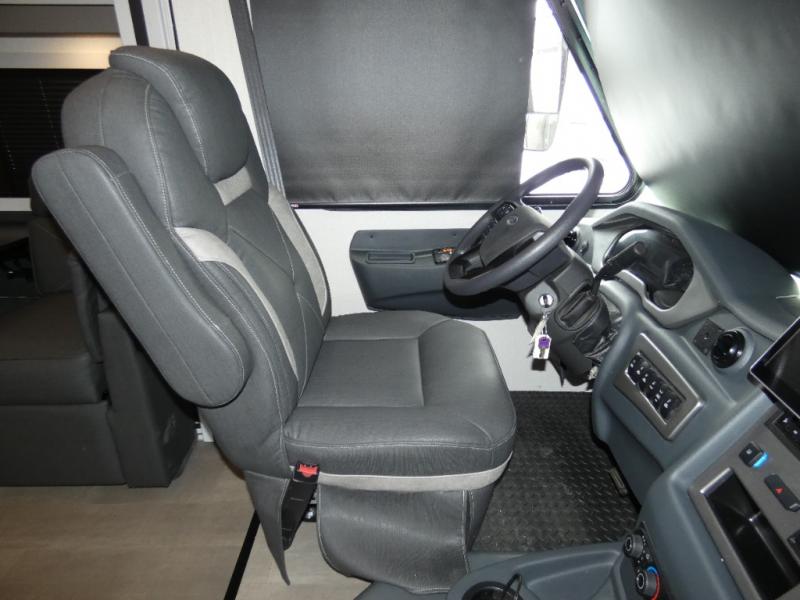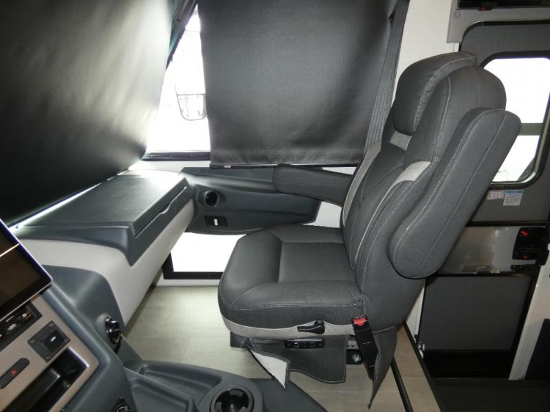 You're sure to have a great time in this sleek motorhome for two! Once you arrive at your destination, the reclining/swivel captain's seats can become a part of the living room where you'll also find a slide out with recliners/dinette. And if you're needing more sleeping space, just choose the optional sofa with a sleeper in place of the dinette! You can then make lunch on the induction cooktop and grab a cold drink from the stainless steel double door refrigerator. The full bath includes a glass shower door, an on-demand water heater, and a shower skylight to let natural light in. Head to the rear bedroom where you can get a great night's rest on the two twin beds with a nightstand in between to set your phone and book on. There is also a 32" bedroom TV so you can watch movies in bed!