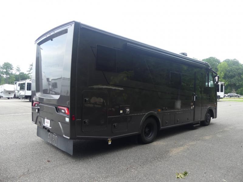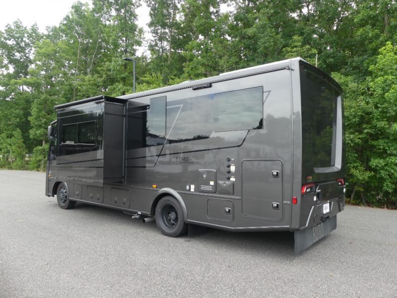 Enjoy the compact and stylish look of a European coach with the Euro Class A gas motorhome by Coachmen RV! There is a crowned, laminated fiberglass roof, a fiberglass front cap, plus a Ford F53 7.3L V8 chassis that will add to the life of your RV. The driver will love having a back up monitor with side view cameras, and the passenger can use the computer workstation to work remotely if needed. There is also traction control, cruise control, plus a tilt and telescoping steering wheel that will make the drive that much easier. An exterior propane hook-up also comes standard, along with radius trunk doors for your gear, and automatic leveling jacks to be set up in no-time. Head inside to find modern features, like the stainless steel appliances, square windows with day/night shades, and the list goes on!