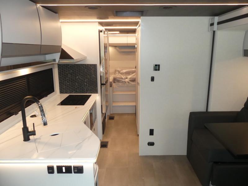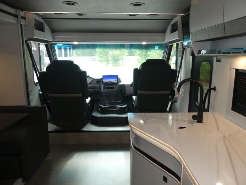 You're sure to have a great time in this sleek motorhome for two! Once you arrive at your destination, the reclining/swivel captain's seats can become a part of the living room where you'll also find a slide out with recliners/dinette. You can then make lunch on the induction cooktop and grab a cold drink from the stainless steel double door refrigerator. The full bath includes a glass shower door, an on-demand water heater, and a shower skylight to let natural light in. Head to the rear bedroom where you can get a great night's rest on the two twin beds with a nightstand in between to set your phone and book on. There is also a 32" bedroom TV so you can watch movies in bed!