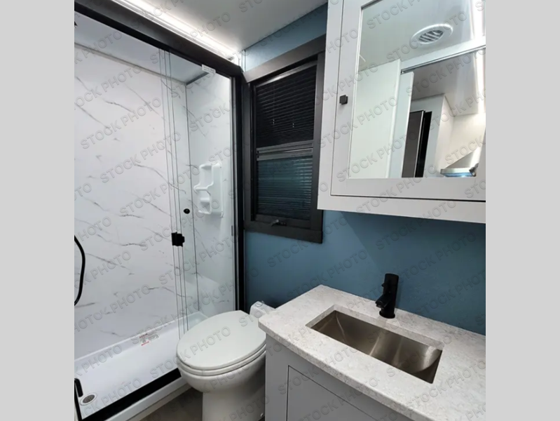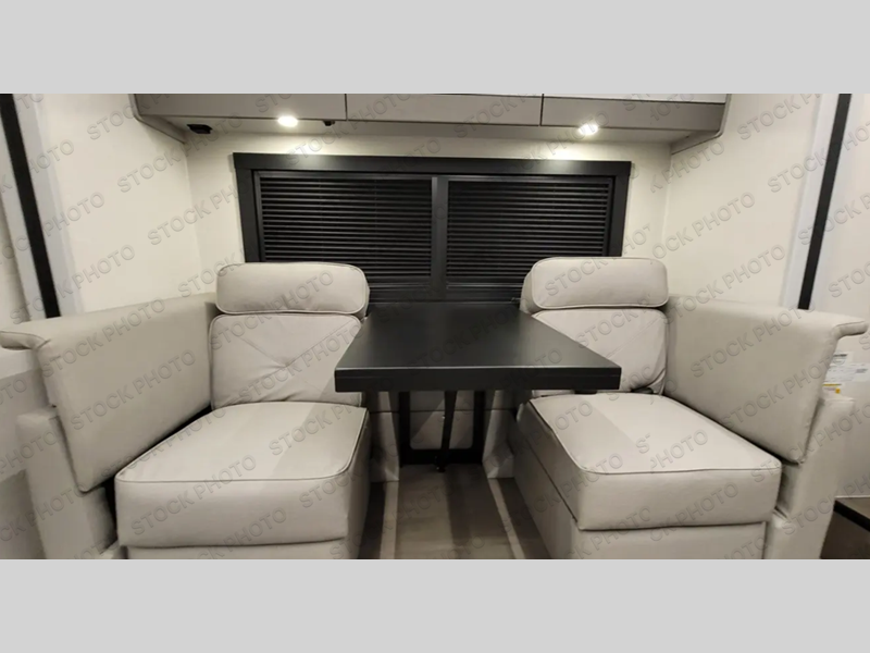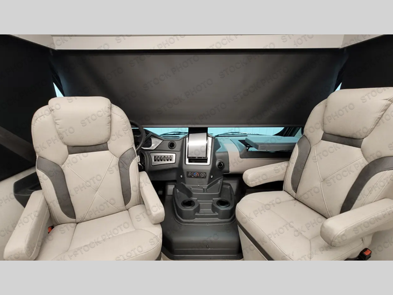 You're sure to have a great time in this sleek motorhome for two! Once you arrive at your destination, the reclining/swivel captain's seats can become a part of the living room where you'll also find a slide out with recliners/dinette. And if you're needing more sleeping space, just choose the optional sofa with a sleeper in place of the dinette! You can then make lunch on the induction cooktop and grab a cold drink from the stainless steel double door refrigerator. The full bath includes a glass shower door, an on-demand water heater, and a shower skylight to let natural light in. Head to the rear bedroom where you can get a great night's rest on the two twin beds with a nightstand in between to set your phone and book on. There is also a 32" bedroom TV so you can watch movies in bed!
