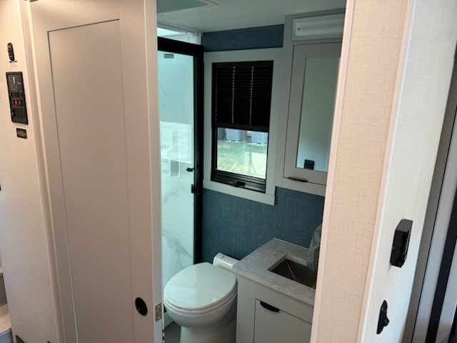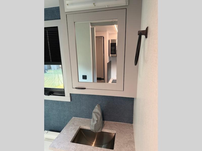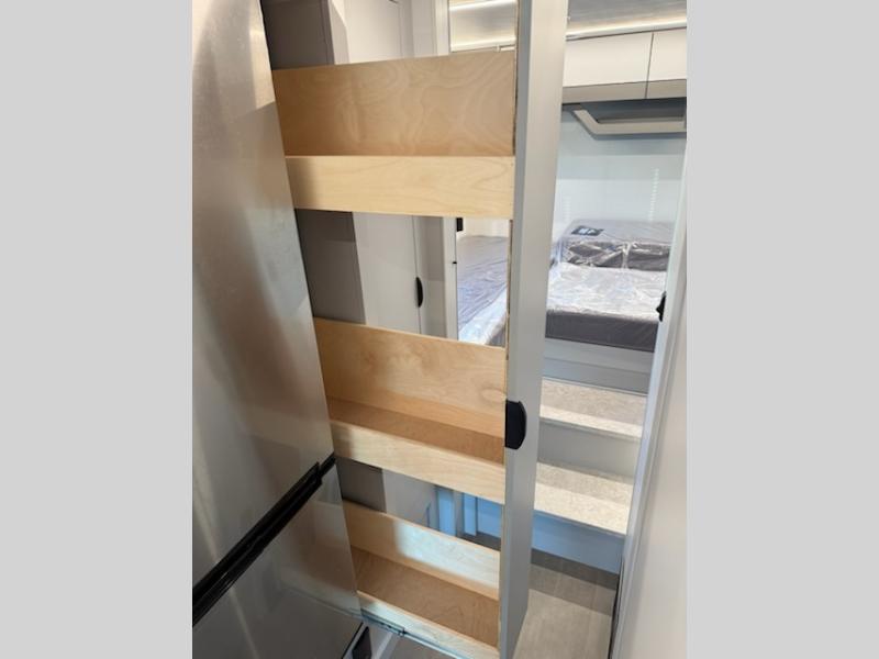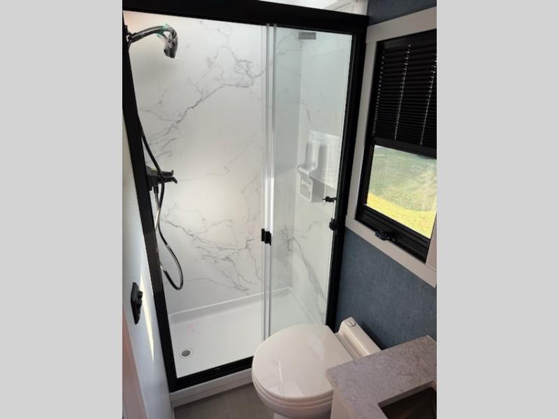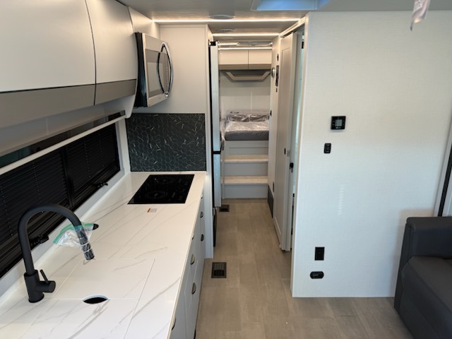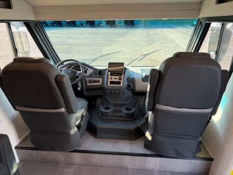 You're sure to have a great time in this sleek motorhome for two! Once you arrive at your destination, the reclining/swivel captain's seats can become a part of the living room where you'll also find a slide out with recliners/dinette. And if you're needing more sleeping space, just choose the optional sofa with a sleeper in place of the dinette! You can then make lunch on the induction cooktop and grab a cold drink from the stainless steel double door refrigerator. The full bath includes a glass shower door, an on-demand water heater, and a shower skylight to let natural light in. Head to the rear bedroom where you can get a great night's rest on the two twin beds with a nightstand in between to set your phone and book on. There is also a 32" bedroom TV so you can watch movies in bed!