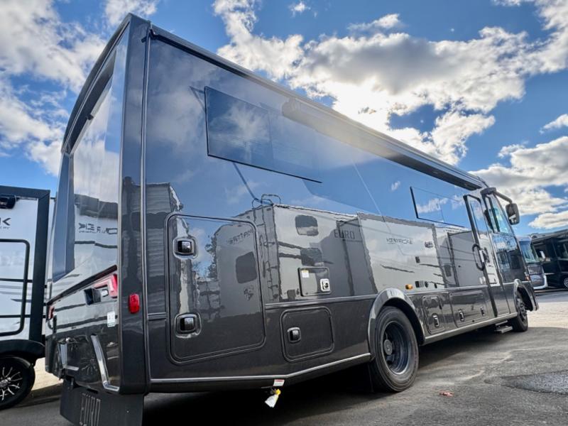 Enjoy the compact and stylish look of a European coach with the Euro Class A gas motorhome by Coachmen RV! There is a crowned, laminated fiberglass roof, a fiberglass front cap, plus a Ford F53 7.3L V8 chassis that will add to the life of your RV. The driver will love having a back up monitor with side view cameras, and the passenger can use the computer workstation to work remotely if needed. There is also traction control, cruise control, plus a tilt and telescoping steering wheel that will make the drive that much easier. An exterior propane hook-up also comes standard, along with radius trunk doors for your gear, and automatic leveling jacks to be set up in no-time. Head inside to find modern features, like the stainless steel appliances, square windows with day/night shades, and the list goes on!