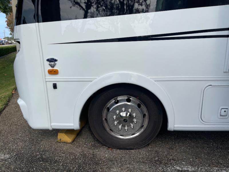 Enjoy the compact and stylish look of a European coach with the Euro Class A gas motorhome by Coachmen RV! There is a crowned, laminated fiberglass roof, a fiberglass front cap, plus a Ford F53 7.3L V8 chassis that will add to the life of your RV. The driver will love having a back up monitor with side view cameras, and the passenger can use the computer workstation to work remotely if needed. There is also traction control, cruise control, plus a tilt and telescoping steering wheel that will make the drive that much easier. An exterior propane hook-up also comes standard, along with radius trunk doors for your gear, and automatic leveling jacks to be set up in no-time. Head inside to find modern features, like the stainless steel appliances, square windows with day/night shades, and the list goes on!