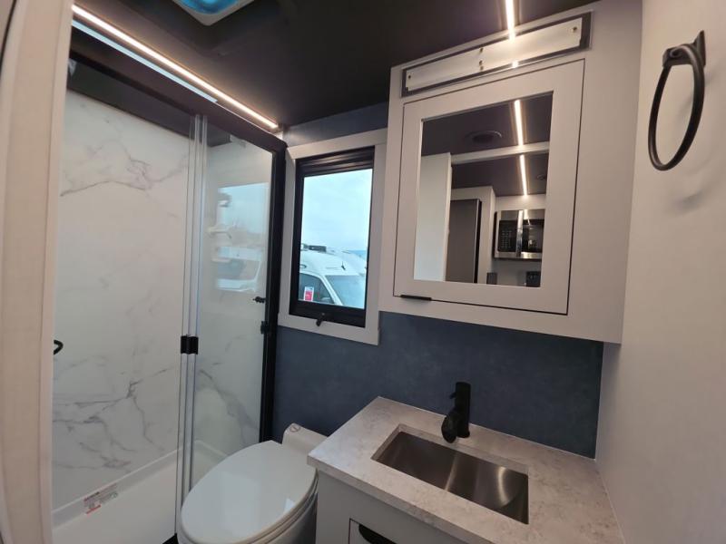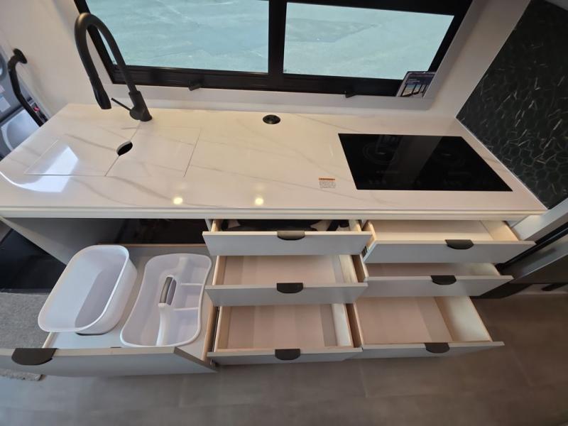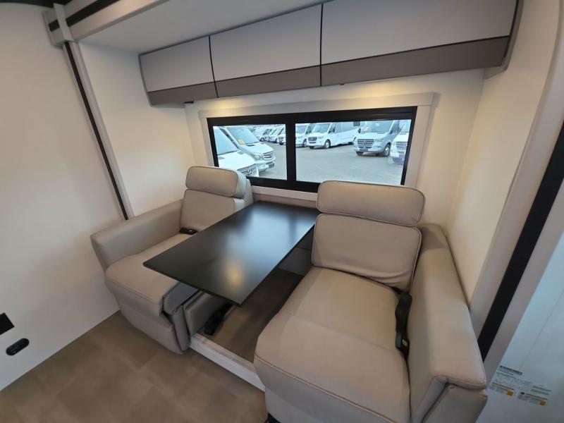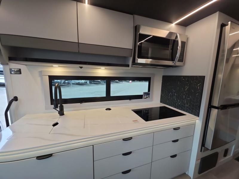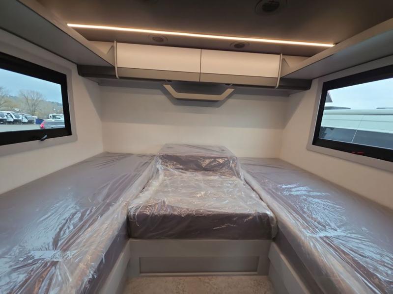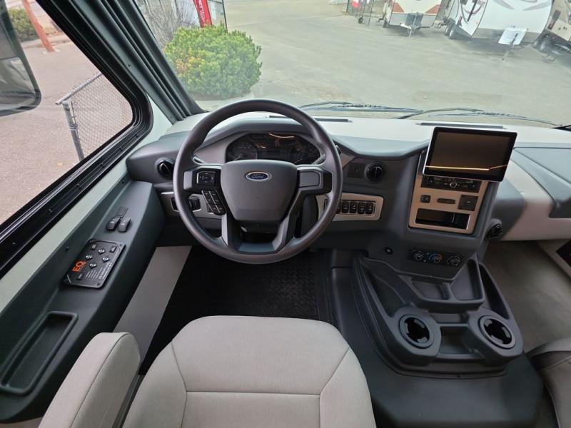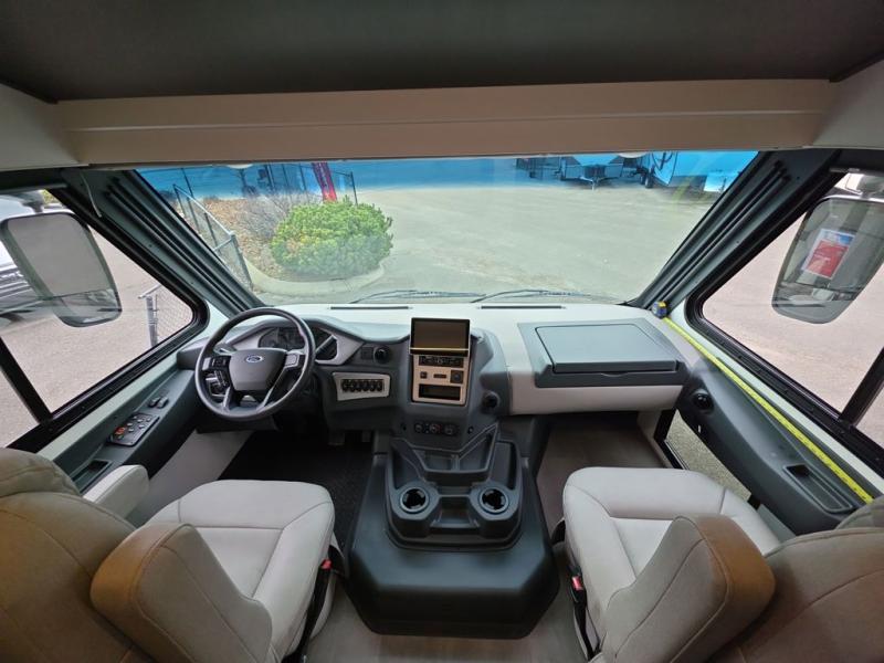 You're sure to have a great time in this sleek motorhome for two! Once you arrive at your destination, the reclining/swivel captain's seats can become a part of the living room where you'll also find a slide out with recliners/dinette. And if you're needing more sleeping space, just choose the optional sofa with a sleeper in place of the dinette! You can then make lunch on the induction cooktop and grab a cold drink from the stainless steel double door refrigerator. The full bath includes a glass shower door, an on-demand water heater, and a shower skylight to let natural light in. Head to the rear bedroom where you can get a great night's rest on the two twin beds with a nightstand in between to set your phone and book on. There is also a 32" bedroom TV so you can watch movies in bed!