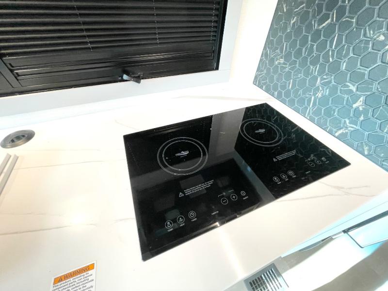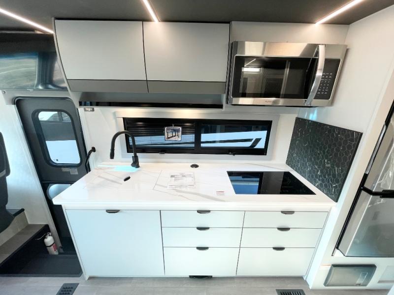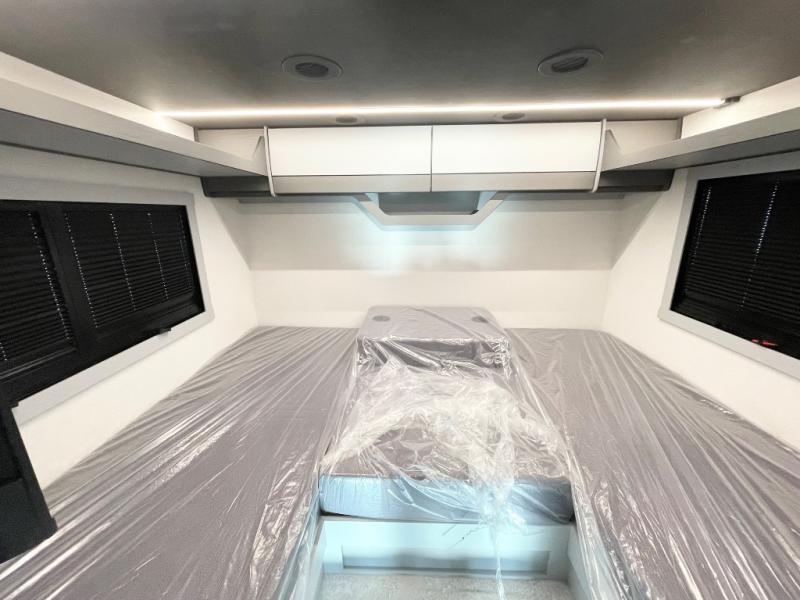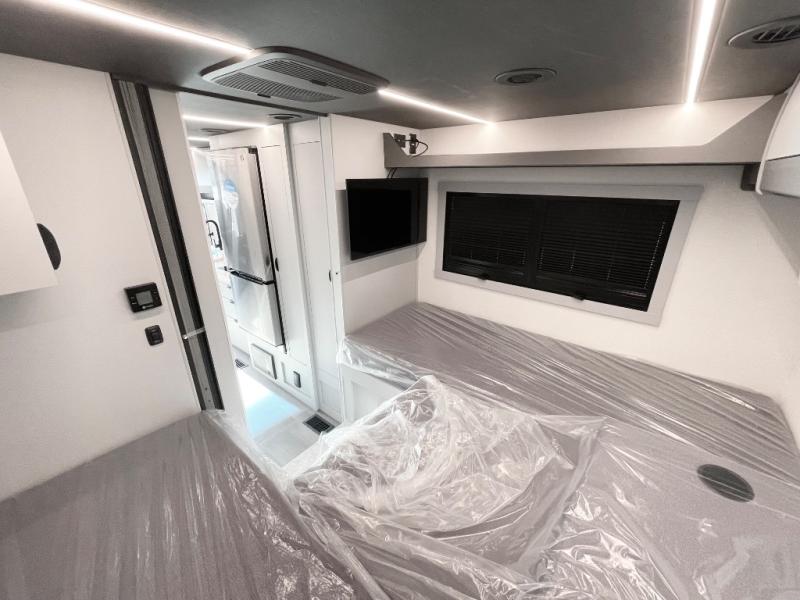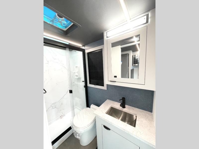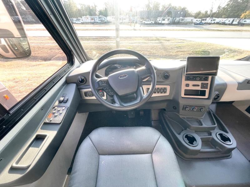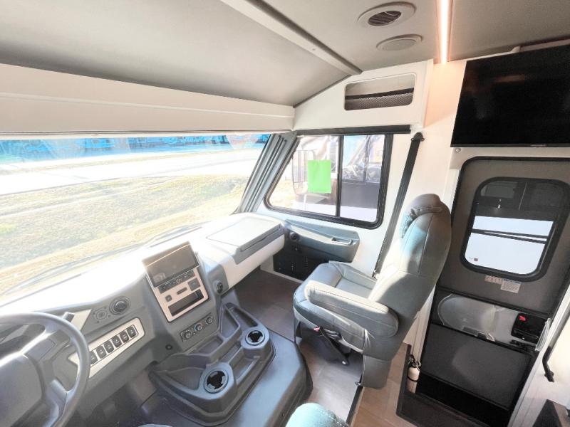 You're sure to have a great time in this sleek motorhome for two! Once you arrive at your destination, the reclining/swivel captain's seats can become a part of the living room where you'll also find a slide out with recliners/dinette. And if you're needing more sleeping space, just choose the optional sofa with a sleeper in place of the dinette! You can then make lunch on the induction cooktop and grab a cold drink from the stainless steel double door refrigerator. The full bath includes a glass shower door, an on-demand water heater, and a shower skylight to let natural light in. Head to the rear bedroom where you can get a great night's rest on the two twin beds with a nightstand in between to set your phone and book on. There is also a 32" bedroom TV so you can watch movies in bed!