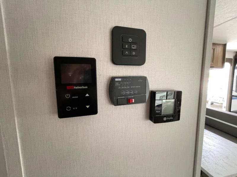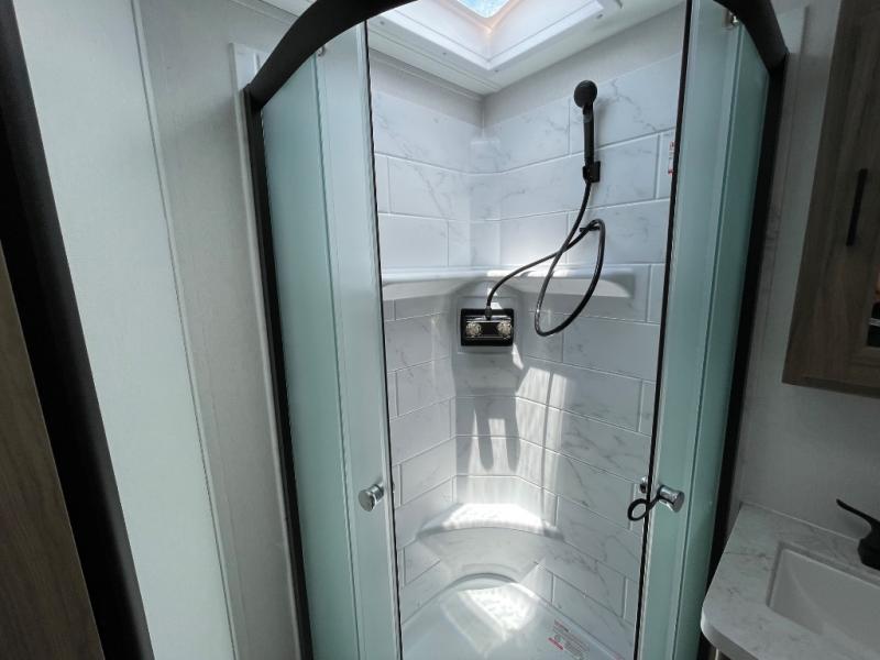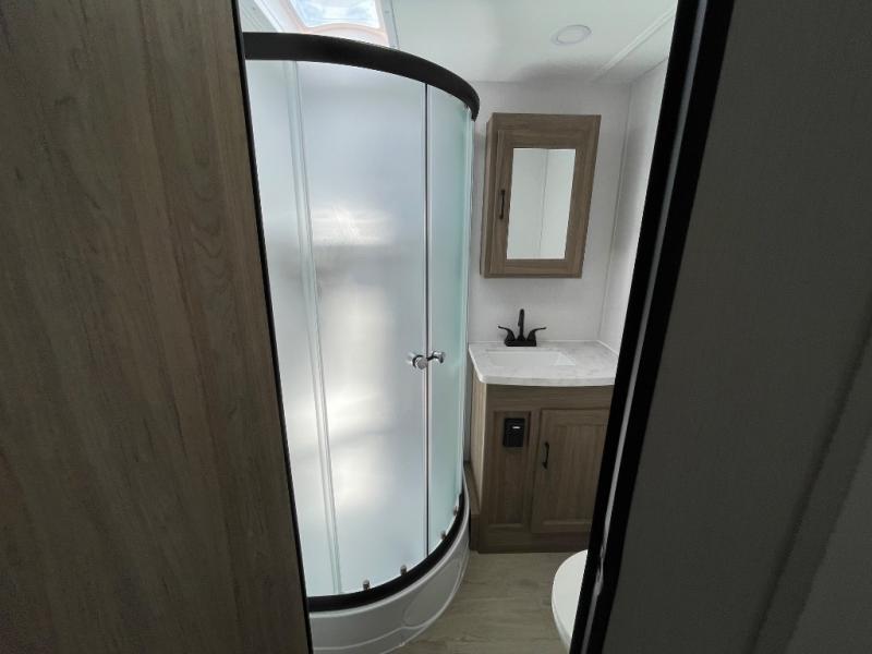 With any Freedom Express Select travel trailer by Coachmen you will find an alumicage construction and vacuum bonded walls with Azdel composite for a trailer made to last. These Select value models come standard with a Bluetooth interior speaker, night shades, and wear-resistant vinyl flooring throughout. You will appreciate the power tongue jack, as well as the Tufflex PVC roof and heated and enclosed underbelly to extend your camping season. A 15K BTU roof A/C will keep you comfortable, and the tankless water heater will provide endless hot showers!