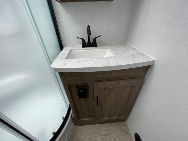 With any Freedom Express Select travel trailer by Coachmen you will find an alumicage construction and vacuum bonded walls with Azdel composite for a trailer made to last. These Select value models come standard with a Bluetooth interior speaker, night shades, and wear-resistant vinyl flooring throughout. You will appreciate the power tongue jack, as well as the Tufflex PVC roof and heated and enclosed underbelly to extend your camping season. A 15K BTU roof A/C will keep you comfortable, and the tankless water heater will provide endless hot showers!