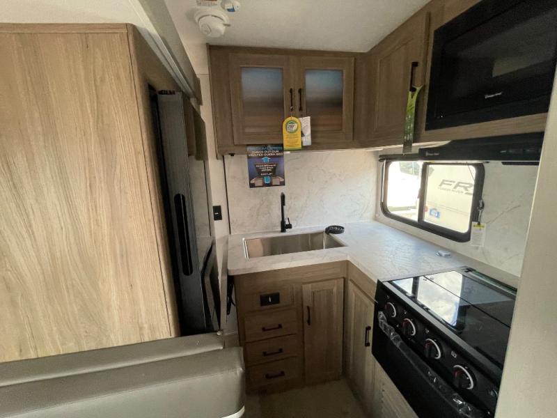 With any Freedom Express Ultra Lite travel trailer by Coachmen you will appreciate quality construction materials, such as vacuum bonded walls with Azdel composite, a 3/4 gel coated fiberglass cap with an automotive glass windshield, and a heated enclosed underbelly. Each model also features Tufflex PVC roofing, front rock guard, and E-Z Lube axles for smooth towing. Inside, you'll find kitchen backsplash, hidden hinge cabinetry, and wear-resistant vinyl flooring throughout. The power tongue jack included with the Ultra Lite Express Package will make set-up a breeze, and each model includes back-up camera prep and they are Freedom solar ready if you plan to go off-grid. Enjoy lightweight camping with a Freedom Express Ultra Lite travel trailer today!