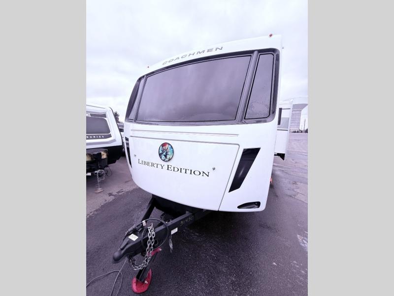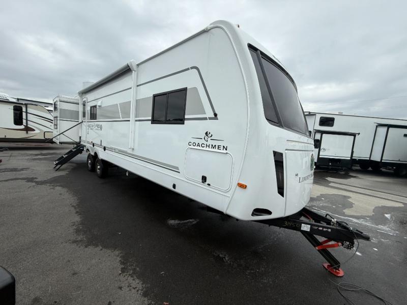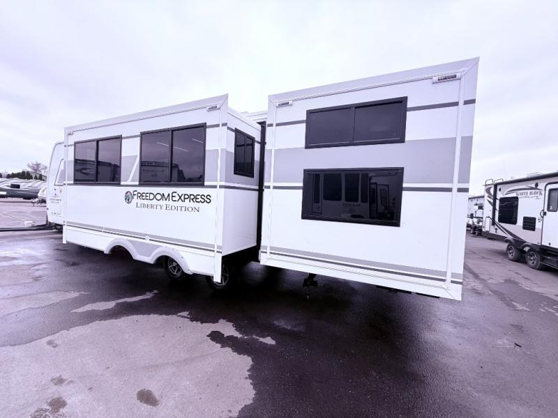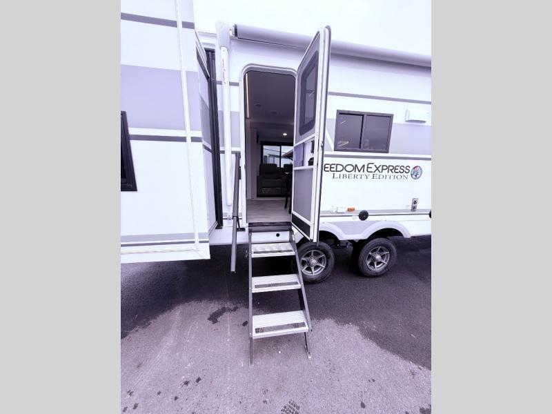 This stunning new Coachmen RV Freedom Express Liberty Edition travel trailers are built on the trusted Freedom Express platform designed with premium features and innovative design elements that will make your journeys unforgettable. Each unit boasts impressive interior space, with a cleverly designed layout and thoughtful touches that make it feel like a home away from home. Flip-up countertop extensions provide extra space for meal prep or work, showing that every detail has been carefully considered to ensure your comfort and convenience. With its perfect blend of style, comfort, and functionality, the Freedom Express Liberty Edition is the ultimate travel trailer for those who crave the freedom to explore and the luxury to savor every moment.