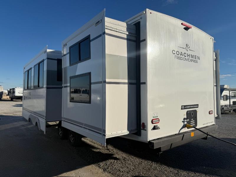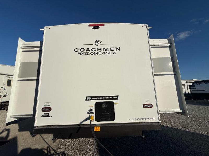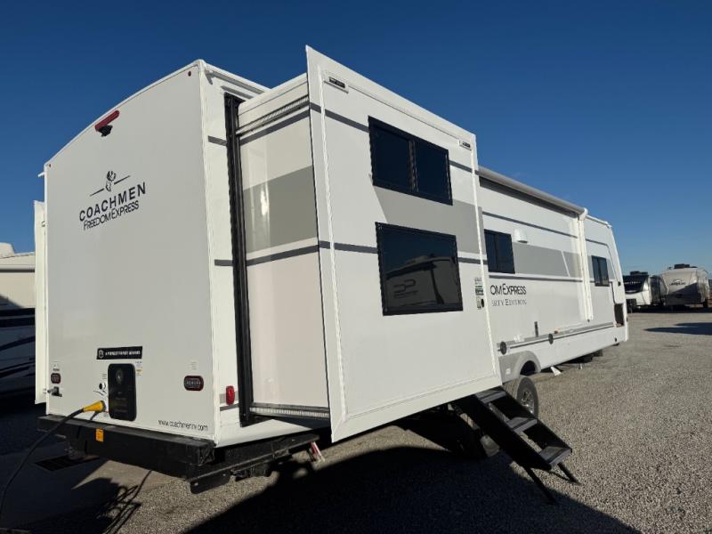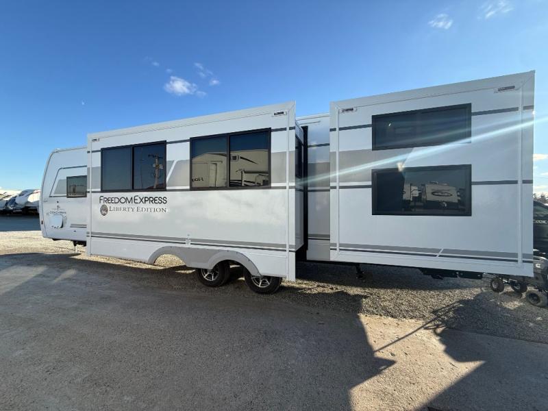 This stunning new Coachmen RV Freedom Express Liberty Edition travel trailers are built on the trusted Freedom Express platform designed with premium features and innovative design elements that will make your journeys unforgettable. Each unit boasts impressive interior space, with a cleverly designed layout and thoughtful touches that make it feel like a home away from home. Flip-up countertop extensions provide extra space for meal prep or work, showing that every detail has been carefully considered to ensure your comfort and convenience. With its perfect blend of style, comfort, and functionality, the Freedom Express Liberty Edition is the ultimate travel trailer for those who crave the freedom to explore and the luxury to savor every moment.