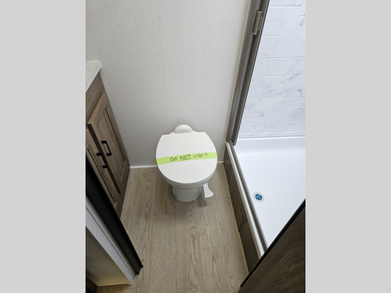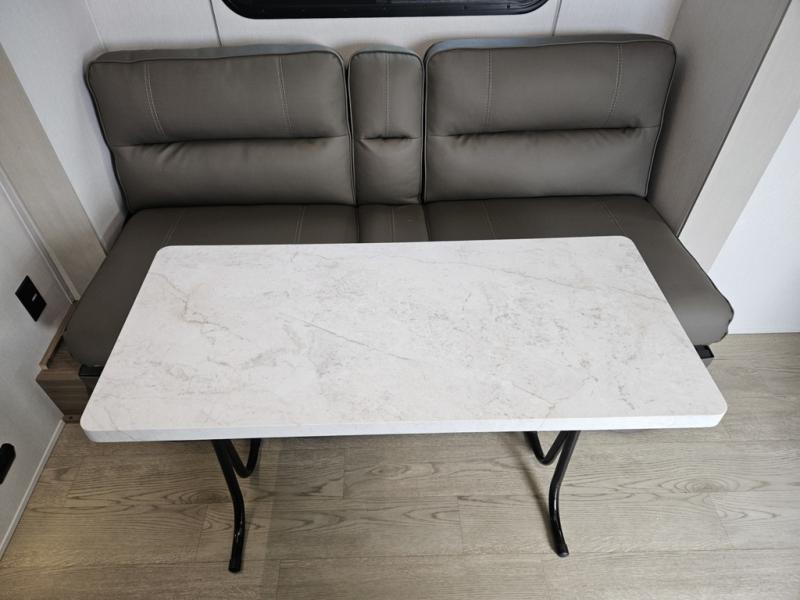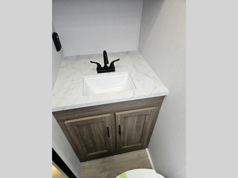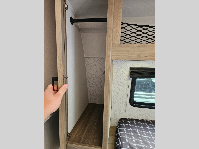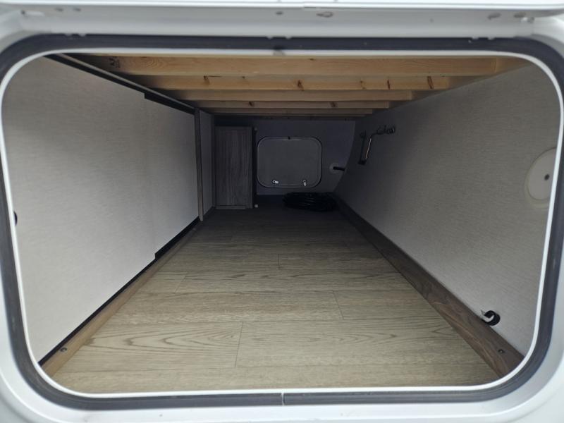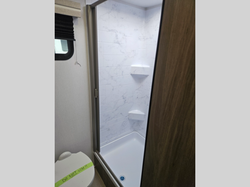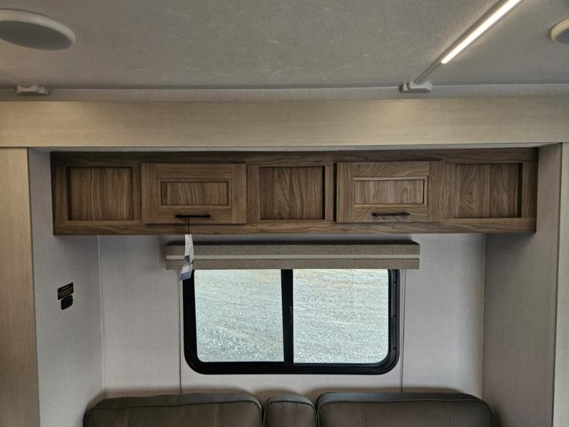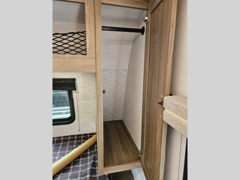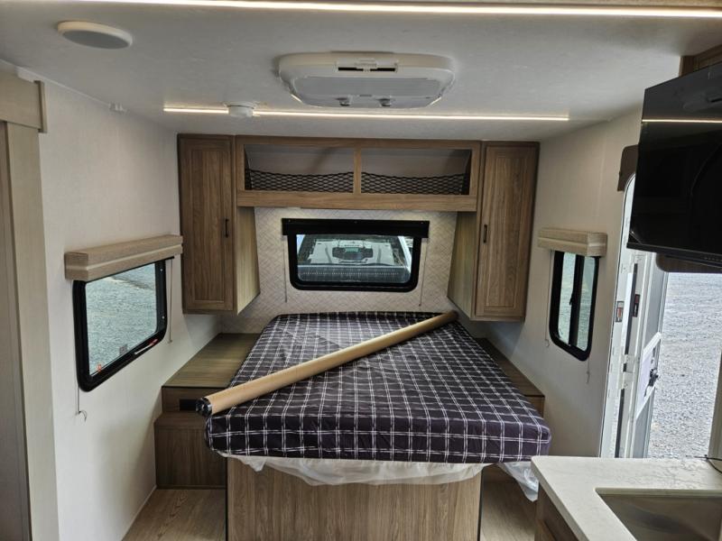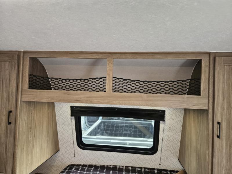 You'll love spending time at the campground in this single slide out travel trailer! The 54" x 80" front bed includes vaulted underbed storage to keep your luggage or extra blankets out of the way, plus there are dual bedside wardrobes for your clothes. A sofa with a free-standing table will provide a place to relax and dine, and the full kitchen includes a dual-burner cooktop and microwave oven to cook meals each day. This unit also features a full rear bath, complete with a 30" x 36" shower, a toilet, and a sink with a medicine cabinet for your necessities.