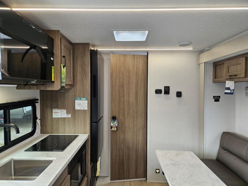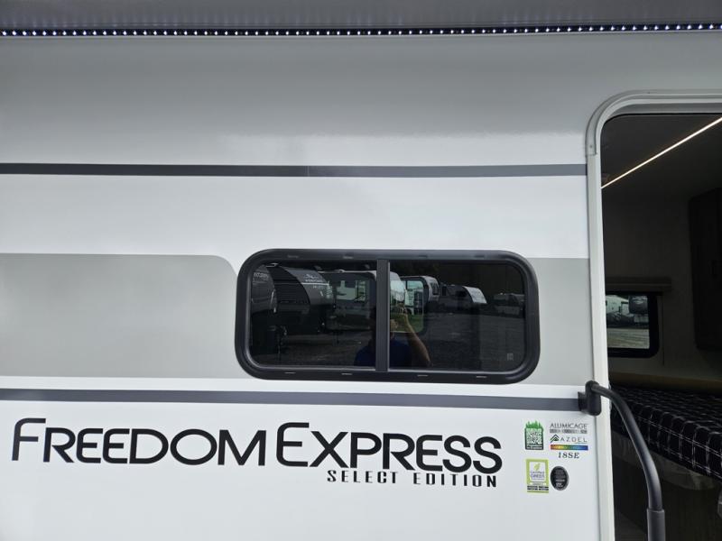 With any Freedom Express Select travel trailer by Coachmen you will find an alumicage construction and vacuum bonded walls with Azdel composite for a trailer made to last. These Select value models come standard with a Bluetooth interior speaker, night shades, and wear-resistant vinyl flooring throughout. You will appreciate the power tongue jack, as well as the Tufflex PVC roof and heated and enclosed underbelly to extend your camping season. A 15K BTU roof A/C will keep you comfortable, and the tankless water heater will provide endless hot showers!