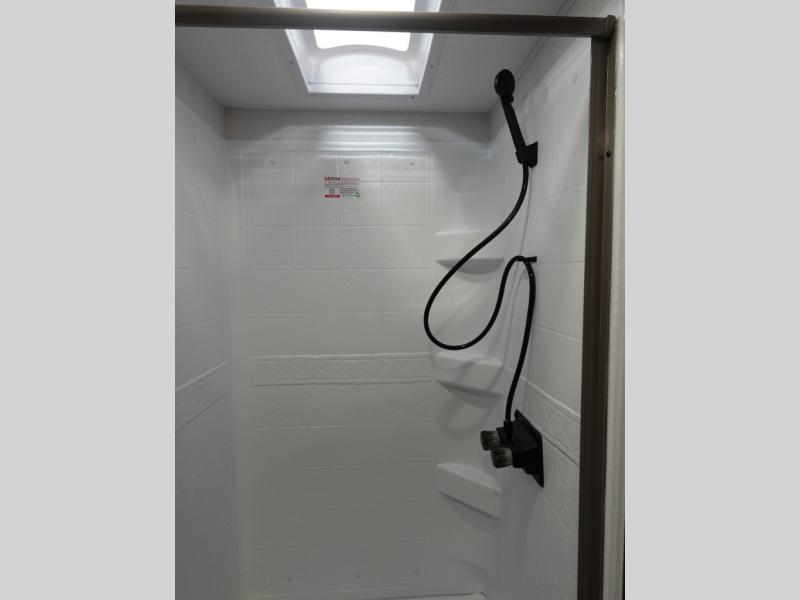 With any Freedom Express Select travel trailer by Coachmen you will find an alumicage construction and vacuum bonded walls with Azdel composite for a trailer made to last. These Select value models come standard with a Bluetooth interior speaker, night shades, and wear-resistant vinyl flooring throughout. You will appreciate the power tongue jack, as well as the Tufflex PVC roof and heated and enclosed underbelly to help with protection and climate control. A 15K BTU roof A/C will keep you comfortable, and the tankless water heater will provide endless hot showers!