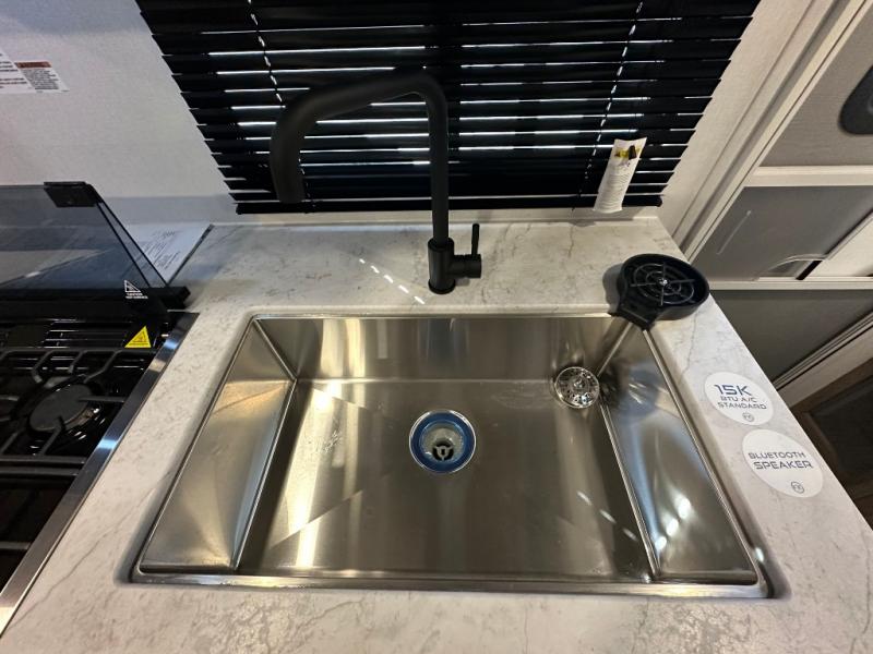 With any Freedom Express Select travel trailer by Coachmen you will find an alumicage construction and vacuum bonded walls with Azdel composite for a trailer made to last. These Select value models come standard with a Bluetooth interior speaker, night shades, and wear-resistant vinyl flooring throughout. You will appreciate the power tongue jack, as well as the Tufflex PVC roof and heated and enclosed underbelly to extend your camping season. A 15K BTU roof A/C will keep you comfortable, and the tankless water heater will provide endless hot showers!
