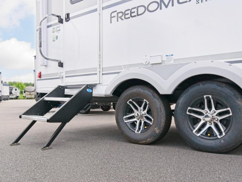 Experience ultimate comfort in the Coachmen Freedom Express Select 19SE with a spacious rear corner bath and a slide-out sofa with a free-standing table—perfect for relaxing after a day of adventure!