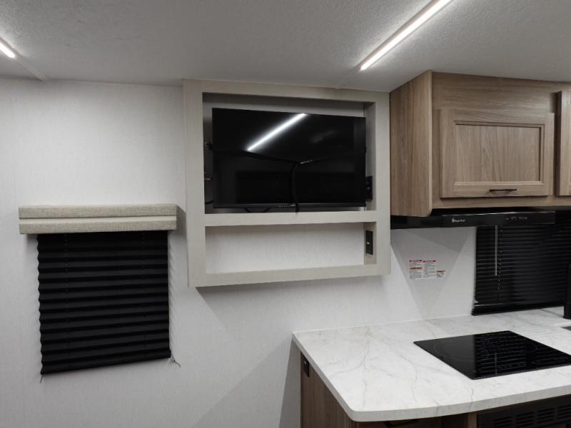 With any Freedom Express Select travel trailer by Coachmen you will find an alumicage construction and vacuum bonded walls with Azdel composite for a trailer made to last. These Select value models come standard with a Bluetooth interior speaker, night shades, and wear-resistant vinyl flooring throughout. You will appreciate the power tongue jack, as well as the Tufflex PVC roof and heated and enclosed underbelly help with protection and climate control. A 15K BTU roof A/C will keep you comfortable, and the tankless water heater will provide endless hot showers!