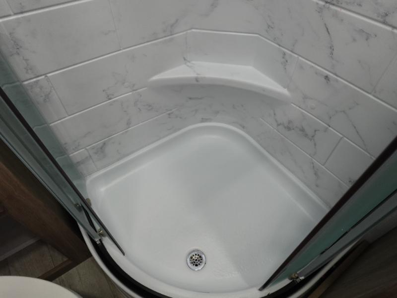 With any Freedom Express Select travel trailer by Coachmen you will find an alumicage construction and vacuum bonded walls with Azdel composite for a trailer made to last. These Select value models come standard with a Bluetooth interior speaker, night shades, and wear-resistant vinyl flooring throughout. You will appreciate the power tongue jack, as well as the Tufflex PVC roof and heated and enclosed underbelly help with protection and climate control. A 15K BTU roof A/C will keep you comfortable, and the tankless water heater will provide endless hot showers!