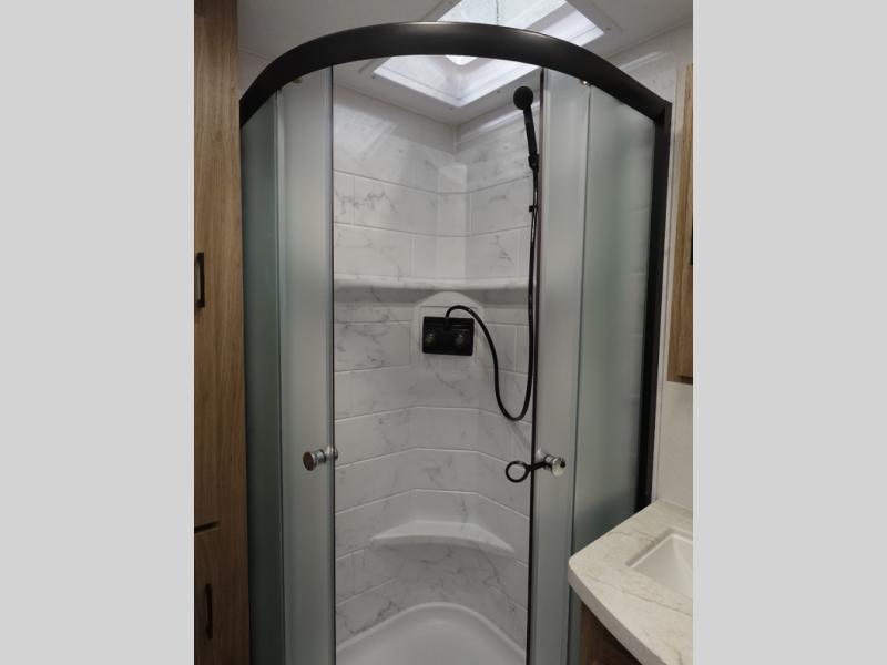 With any Freedom Express Select travel trailer by Coachmen you will find an alumicage construction and vacuum bonded walls with Azdel composite for a trailer made to last. These Select value models come standard with a Bluetooth interior speaker, night shades, and wear-resistant vinyl flooring throughout. You will appreciate the power tongue jack, as well as the Tufflex PVC roof and heated and enclosed underbelly help with protection and climate control. A 15K BTU roof A/C will keep you comfortable, and the tankless water heater will provide endless hot showers!