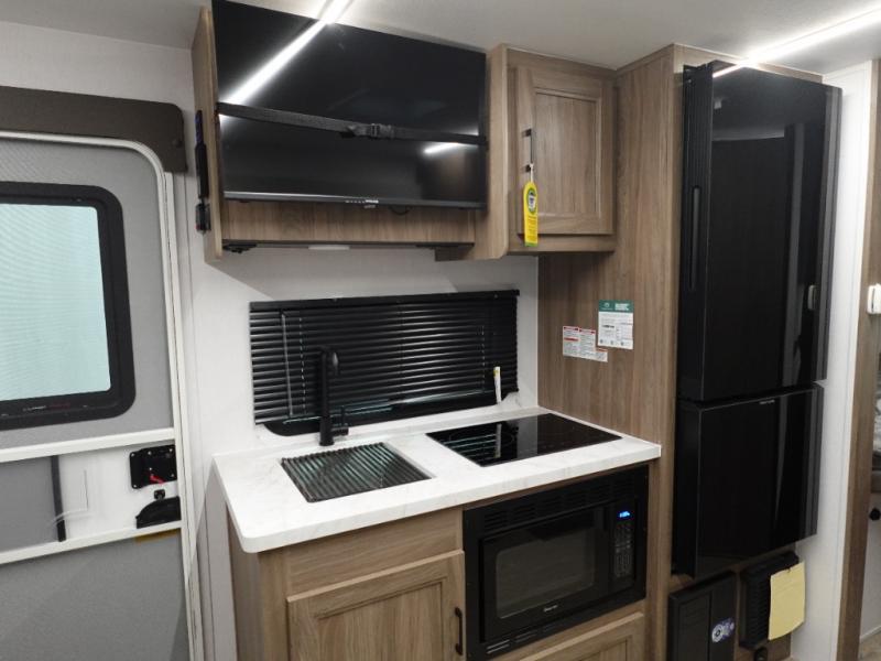 With any Freedom Express Select travel trailer by Coachmen you will find an alumicage construction and vacuum bonded walls with Azdel composite for a trailer made to last. These Select value models come standard with a Bluetooth interior speaker, night shades, and wear-resistant vinyl flooring throughout. You will appreciate the power tongue jack, as well as the Tufflex PVC roof and heated and enclosed underbelly to help with protection and climate control. A 15K BTU roof A/C will keep you comfortable, and the tankless water heater will provide endless hot showers!