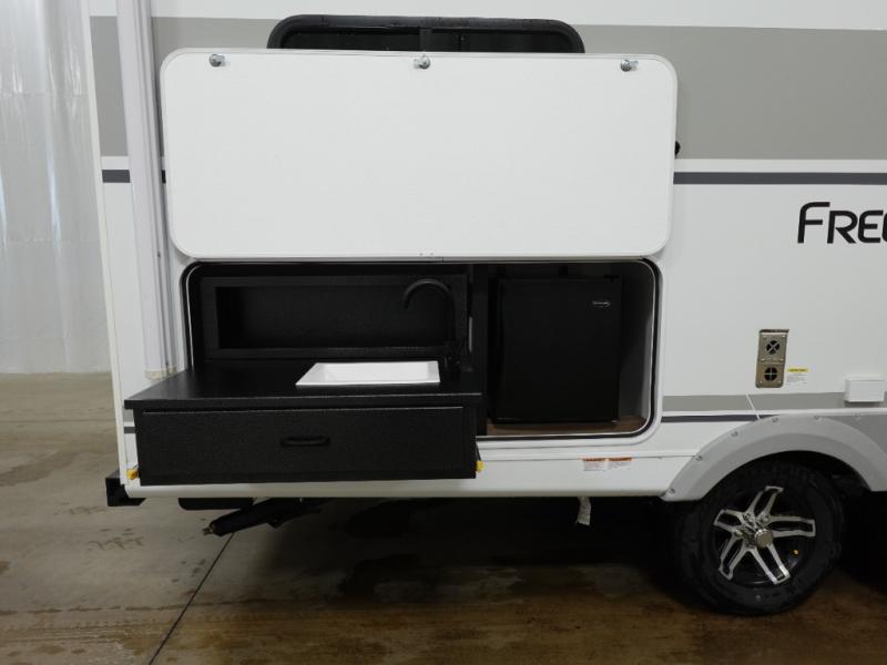 With any Freedom Express Select travel trailer by Coachmen you will find an alumicage construction and vacuum bonded walls with Azdel composite for a trailer made to last. These Select value models come standard with a Bluetooth interior speaker, night shades, and wear-resistant vinyl flooring throughout. You will appreciate the power tongue jack, as well as the Tufflex PVC roof and heated and enclosed underbelly to help with protection and climate control. A 15K BTU roof A/C will keep you comfortable, and the tankless water heater will provide endless hot showers!