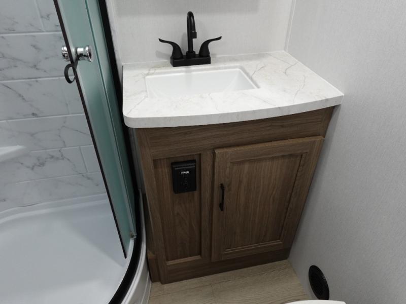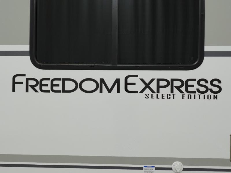 With any Freedom Express Select travel trailer by Coachmen you will find an alumicage construction and vacuum bonded walls with Azdel composite for a trailer made to last. These Select value models come standard with a Bluetooth interior speaker, night shades, and wear-resistant vinyl flooring throughout. You will appreciate the power tongue jack, as well as the Tufflex PVC roof and heated and enclosed underbelly to help with protection and climate control. A 15K BTU roof A/C will keep you comfortable, and the tankless water heater will provide endless hot showers!