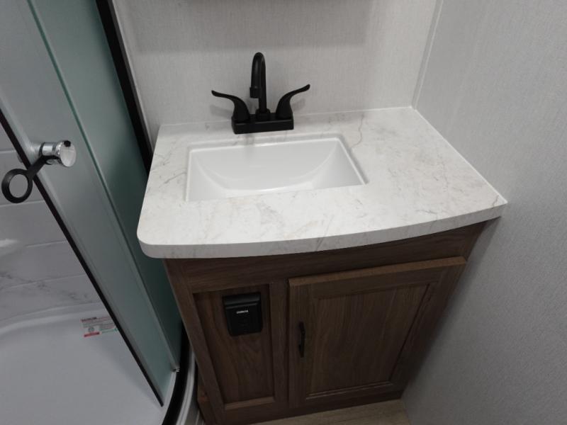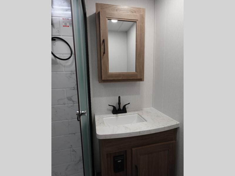 With any Freedom Express Select travel trailer by Coachmen you will find an alumicage construction and vacuum bonded walls with Azdel composite for a trailer made to last. These Select value models come standard with a Bluetooth interior speaker, night shades, and wear-resistant vinyl flooring throughout. You will appreciate the power tongue jack, as well as the Tufflex PVC roof and heated and enclosed underbelly to help with protection and climate control. A 15K BTU roof A/C will keep you comfortable, and the tankless water heater will provide endless hot showers!