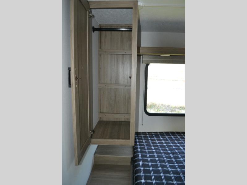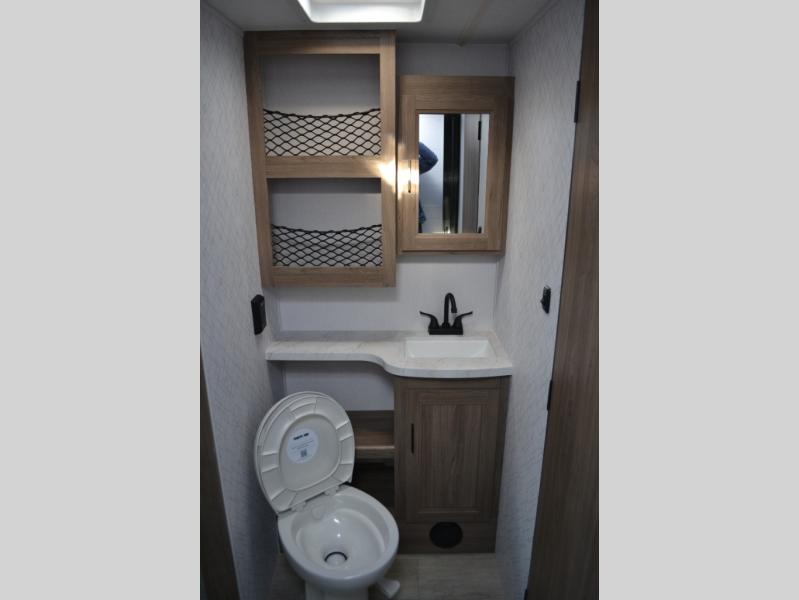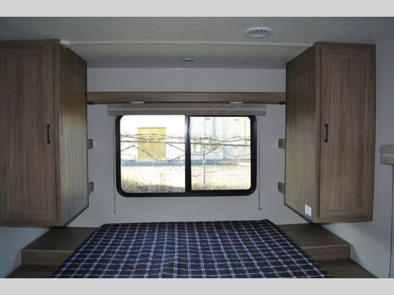 Step inside this travel trailer and be welcomed by a spacious front living area featuring a full-width sofa, complemented by a cozy dinette, ottoman, and an entertainment center—perfect for relaxing, dining, or planning your day. The central kitchen is fully equipped for the chef, boasting a 10 cubic ft refrigerator, Magic Chef gas cooktop, microwave, and ample overhead storage. Moving forward, a convenient pass-through full bathroom offers practicality on the go. At the rear, the bedroom features a comfortable 60" x 80" queen bed, flanked by wardrobes on each side and additional overhead storage to keep all your essentials neatly organized.