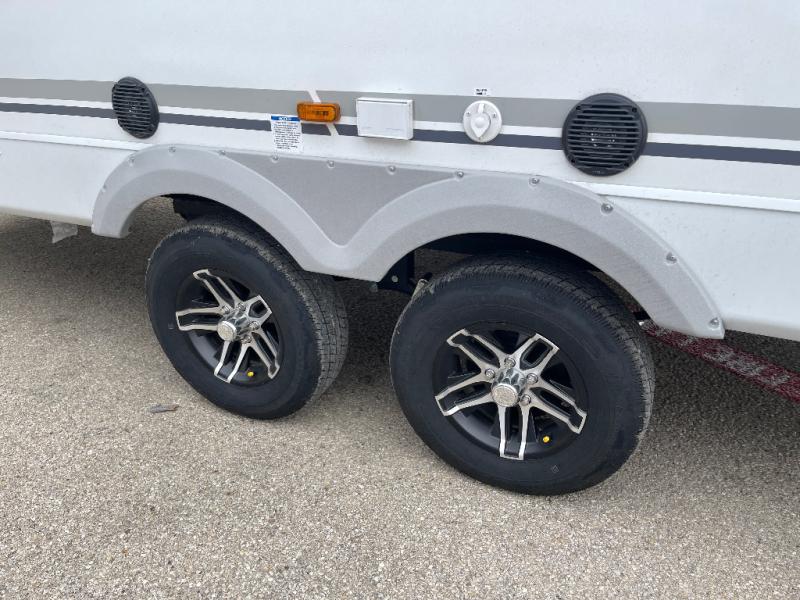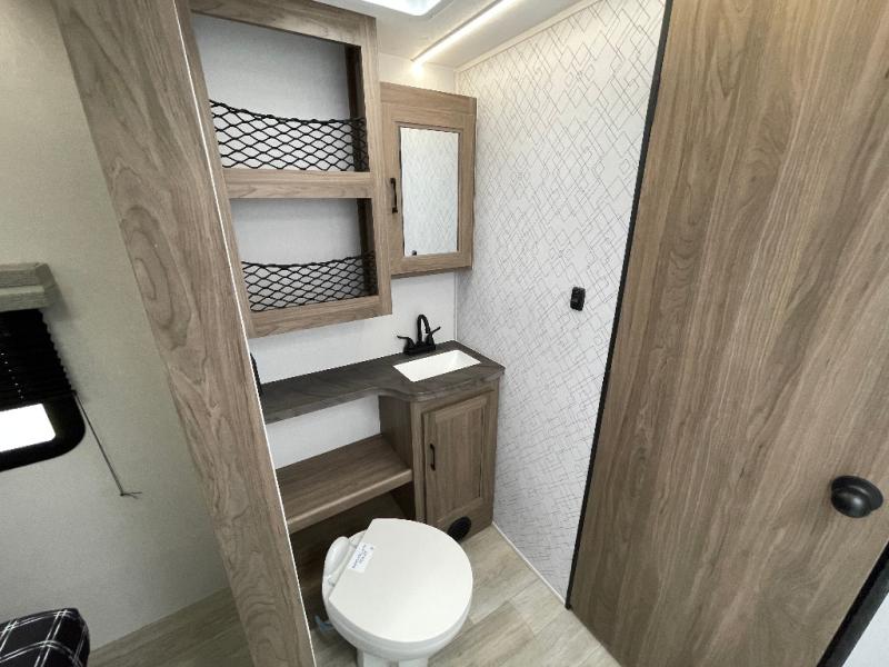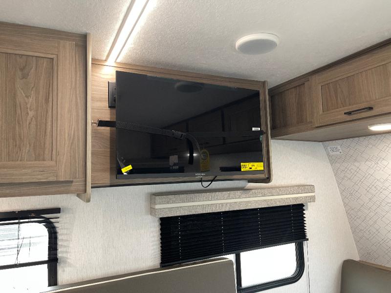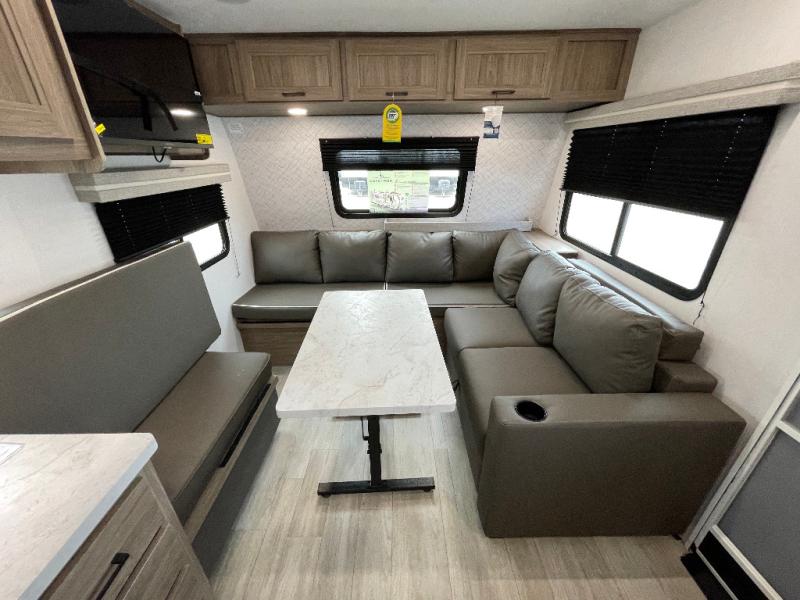 With any Freedom Express Select travel trailer by Coachmen you will find an alumicage construction and two-step vacuum bonded and pinch rolled sidewalls with Azdel interior and exterior for a trailer made to last. These Select value models come standard with a Bluetooth interior speaker, night shades, and wear-resistant vinyl flooring throughout. You will appreciate the power tongue jack, as well as the Dicor Tufflex PVC roof and heated and enclosed underbelly to help with protection and climate control. A GE 15K BTU roof A/C will keep you comfortable, and the suburban tankless water heater will provide endless hot showers!