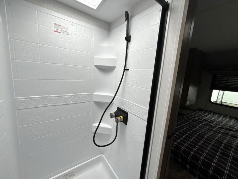 With any Freedom Express Select travel trailer by Coachmen you will find an alumicage construction and two-step vacuum bonded and pinch rolled sidewalls with Azdel interior and exterior for a trailer made to last. These Select value models come standard with a Bluetooth interior speaker, night shades, and wear-resistant vinyl flooring throughout. You will appreciate the power tongue jack, as well as the Dicor Tufflex PVC roof and heated and enclosed underbelly to help with protection and climate control. A GE 15K BTU roof A/C will keep you comfortable, and the suburban tankless water heater will provide endless hot showers!