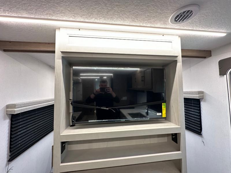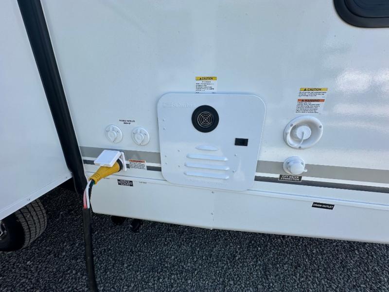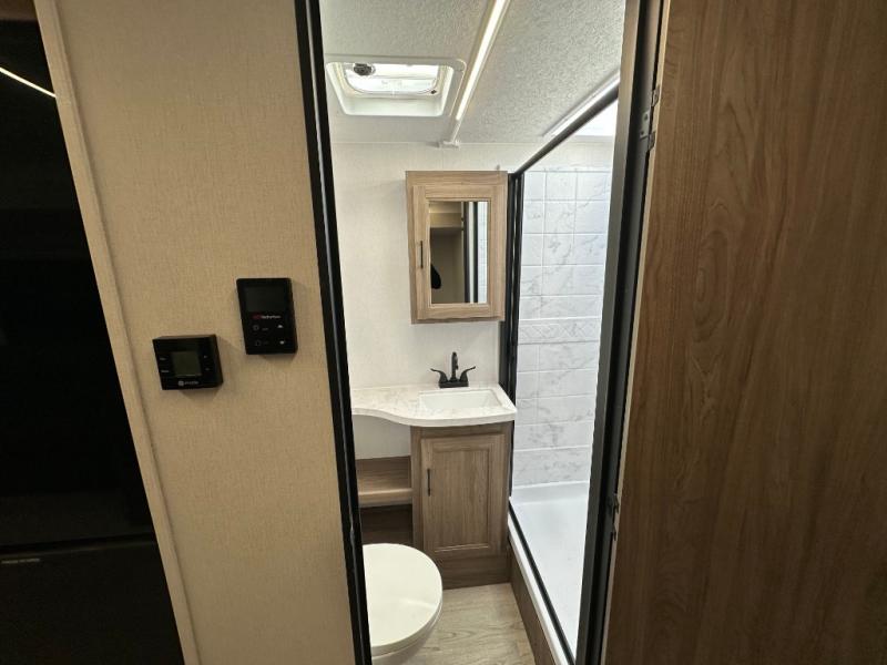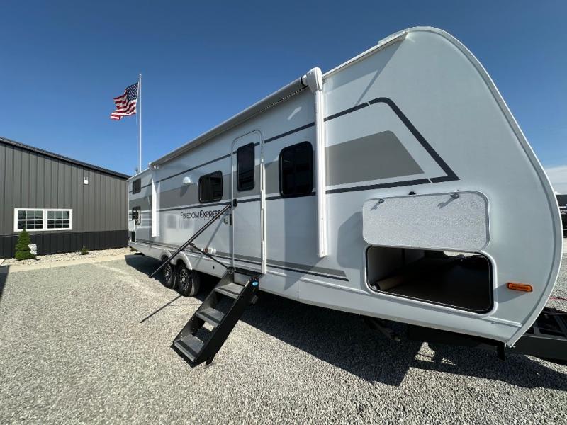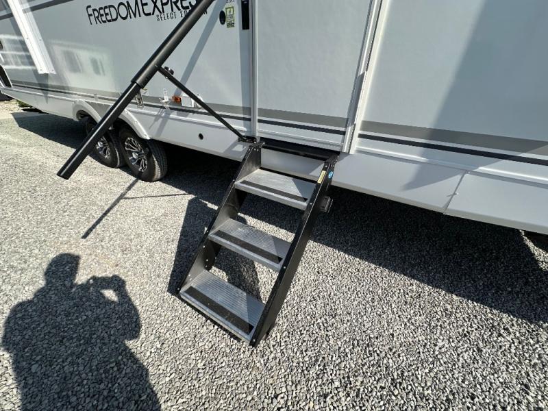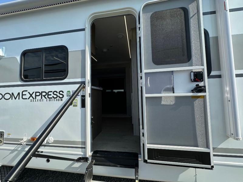 With any Freedom Express Select travel trailer by Coachmen you will find an alumicage construction and vacuum bonded walls with Azdel composite for a trailer made to last. These Select value models come standard with a Bluetooth interior speaker, night shades, and wear-resistant vinyl flooring throughout. You will appreciate the power tongue jack, as well as the Tufflex PVC roof and heated and enclosed underbelly to extend your camping season. A 15K BTU roof A/C will keep you comfortable, and the tankless water heater will provide endless hot showers!