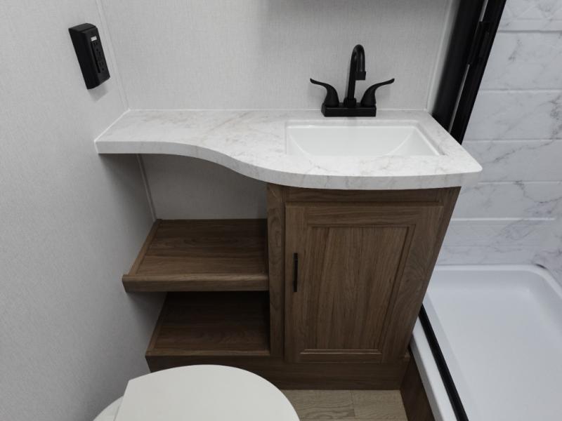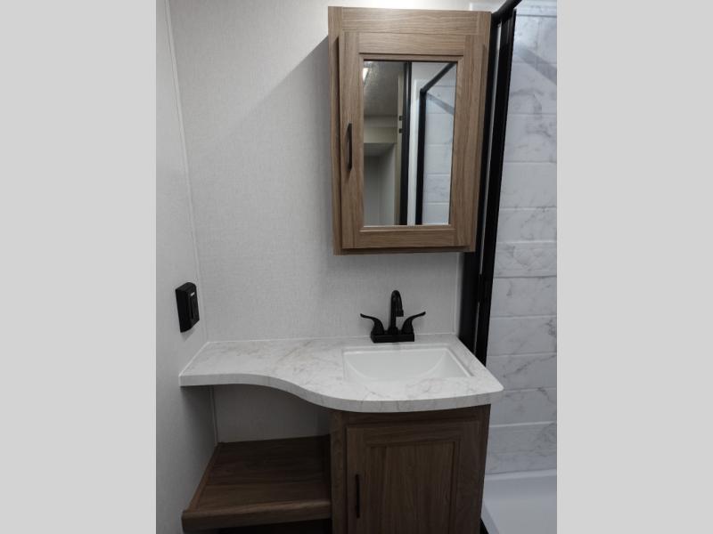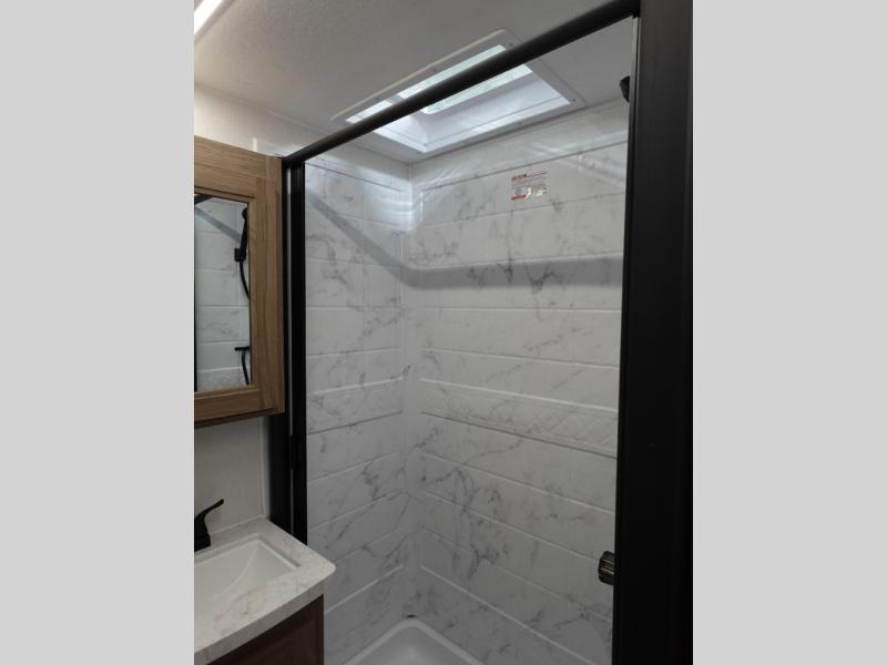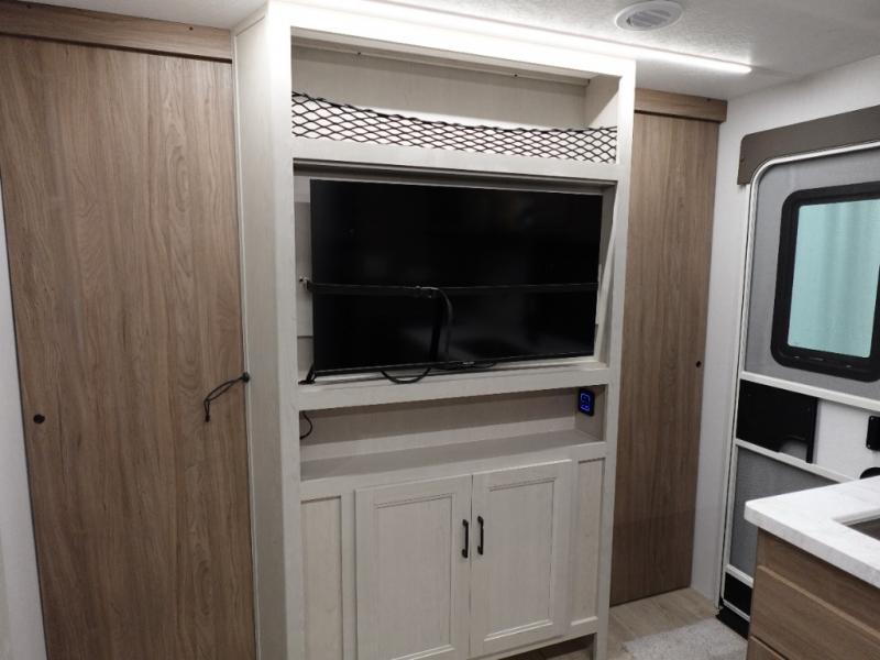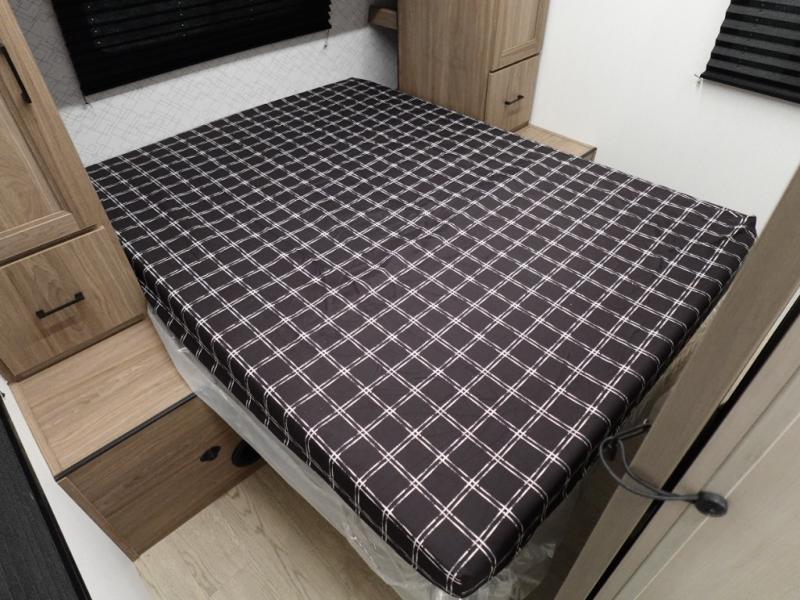 With any Freedom Express Select travel trailer by Coachmen you will find an alumicage construction and vacuum bonded walls with Azdel composite for a trailer made to last. These Select value models come standard with a Bluetooth interior speaker, night shades, and wear-resistant vinyl flooring throughout. You will appreciate the power tongue jack, as well as the Tufflex PVC roof and heated and enclosed underbelly to help with protection and climate control. A 15K BTU roof A/C will keep you comfortable, and the tankless water heater will provide endless hot showers!