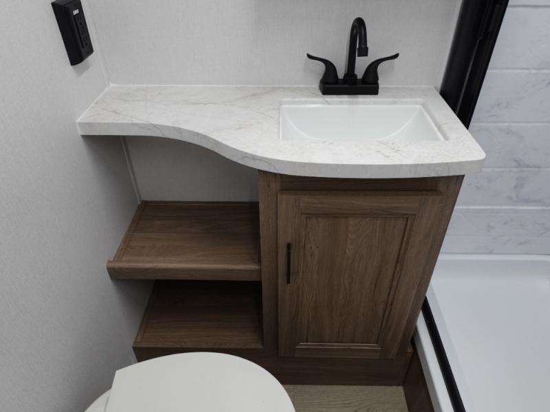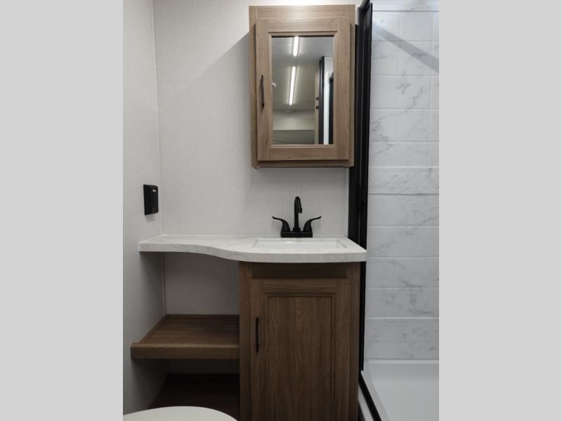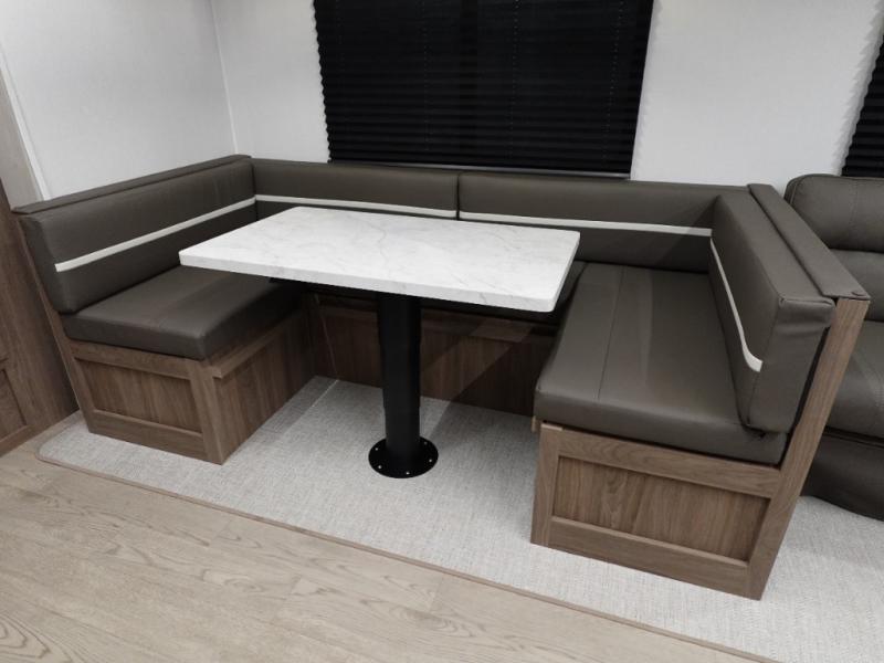 With any Freedom Express Select travel trailer by Coachmen you will find an alumicage construction and vacuum bonded walls with Azdel composite for a trailer made to last. These Select value models come standard with a Bluetooth interior speaker, night shades, and wear-resistant vinyl flooring throughout. You will appreciate the power tongue jack, as well as the Tufflex PVC roof and heated and enclosed underbelly to help with protection and climate control. A 15K BTU roof A/C will keep you comfortable, and the tankless water heater will provide endless hot showers!