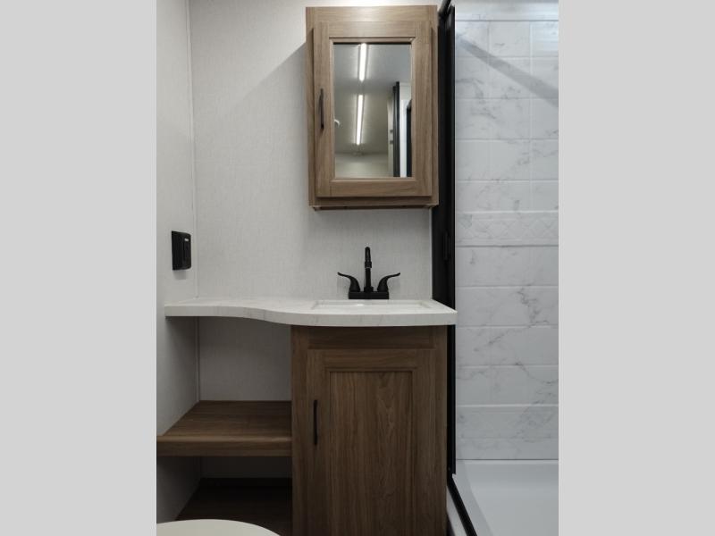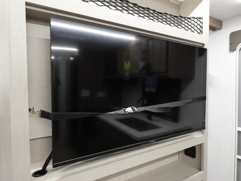 With any Freedom Express Select travel trailer by Coachmen you will find an alumicage construction and vacuum bonded walls with Azdel composite for a trailer made to last. These Select value models come standard with a Bluetooth interior speaker, night shades, and wear-resistant vinyl flooring throughout. You will appreciate the power tongue jack, as well as the Tufflex PVC roof and heated and enclosed underbelly to help with protection and climate control. A 15K BTU roof A/C will keep you comfortable, and the tankless water heater will provide endless hot showers!