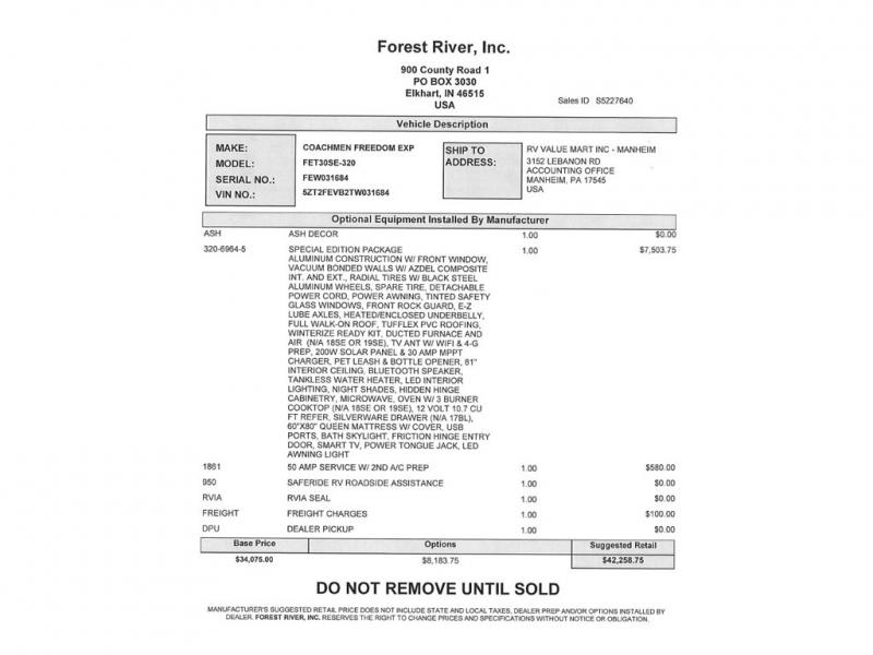Coachmen Freedom Express Select travel trailer 30SE highlights: