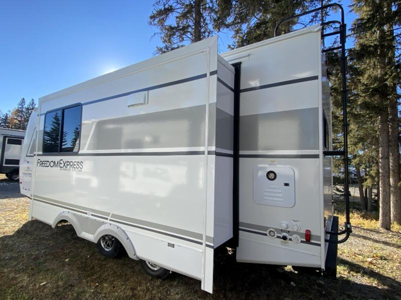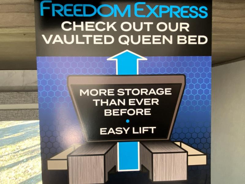 With any Freedom Express Ultra Lite travel trailer by Coachmen you will appreciate quality construction materials, such as vacuum bonded walls with Azdel composite, a 3/4 gel coated fiberglass cap with an automotive glass windshield, and a heated enclosed underbelly. Each model also features Tufflex PVC roofing, front rock guard, and E-Z Lube axles for smooth towing. Inside, you'll find kitchen backsplash, hidden hinge cabinetry, and wear-resistant vinyl flooring throughout. The power tongue jack included with the Ultra Lite Express Package will make set-up a breeze, and each model includes back-up camera prep and they are Freedom solar ready if you plan to go off-grid. Enjoy lightweight camping with a Freedom Express Ultra Lite travel trailer today!