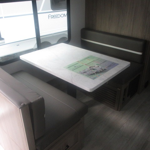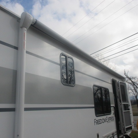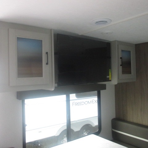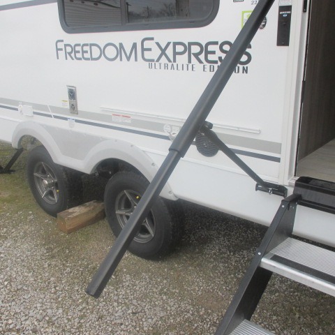 With any Freedom Express Ultra Lite travel trailer by Coachmen you will appreciate quality construction materials, such as vacuum bonded walls with Azdel composite, a 3/4 gel coated fiberglass cap with an automotive glass windshield, and a heated enclosed underbelly. Each model also features Tufflex PVC roofing, front rock guard, and E-Z Lube axles for smooth towing. Inside, you'll find kitchen backsplash, hidden hinge cabinetry, and wear-resistant vinyl flooring throughout. The power tongue jack included with the Ultra Lite Express Package will make set-up a breeze, and each model includes back-up camera prep and they are Freedom solar ready if you plan to go off-grid. Enjoy lightweight camping with a Freedom Express Ultra Lite travel trailer today!
