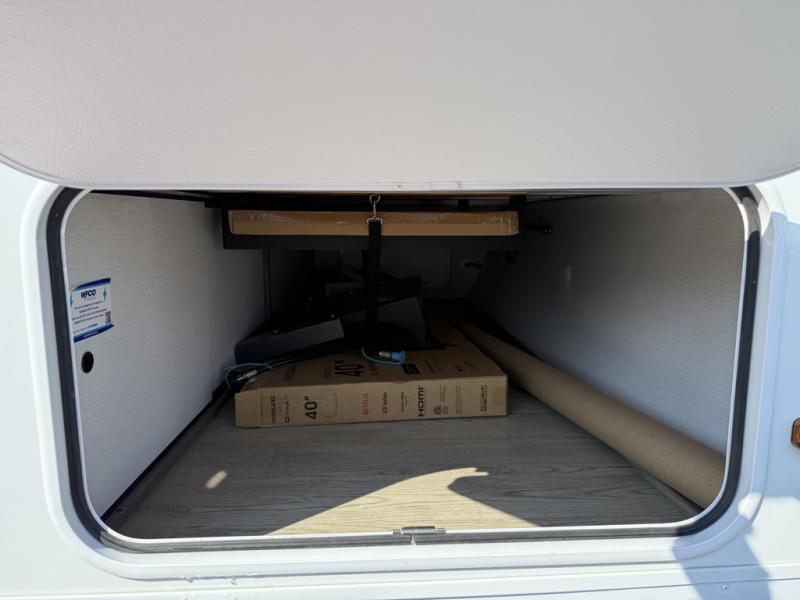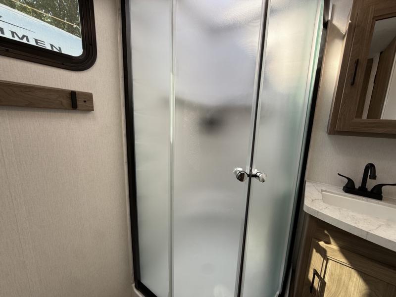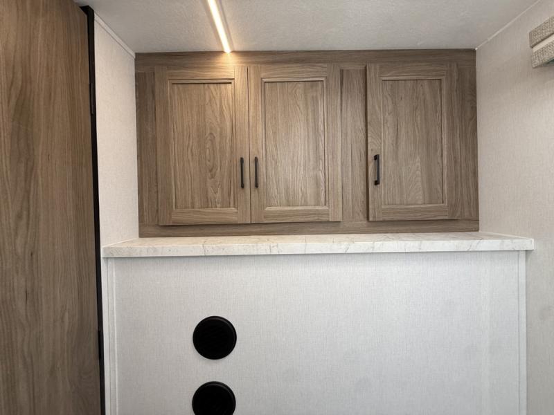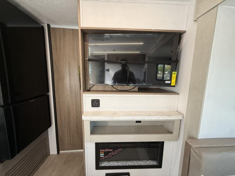 This travel trailer will feel just like home with its private bedroom and spacious full rear bath. You will appreciate the vaulted under-bed storage for extra blankets, shoes, and luggage, plus there are dual wardrobes on either side of the bed for your book and glasses. Get comfortable in the main living area on the sofa or at the booth dinette, or you can choose the optional theater seat or optional hide-a-bed sofa in place of the standard sofa. The chef of your group can prepare meals indoors or outdoors on the full camp kitchen, and check out the large 20' power awning with LED lights that will provide protection from the elements.