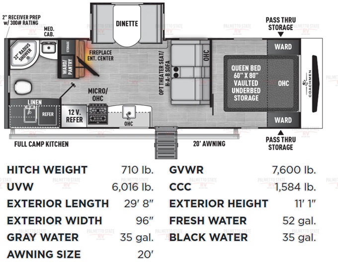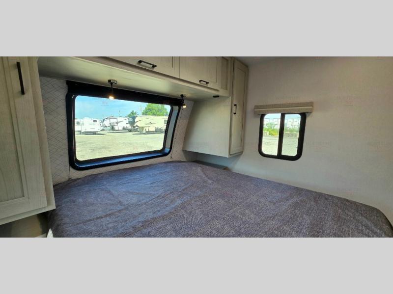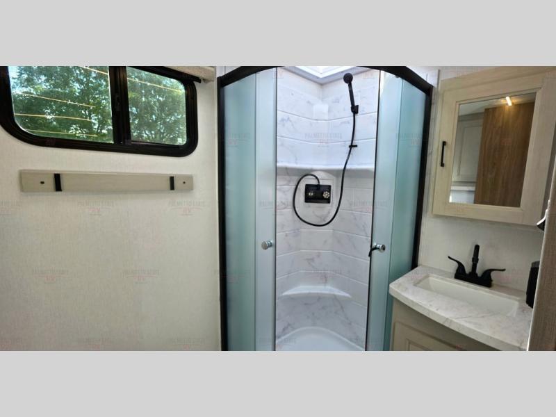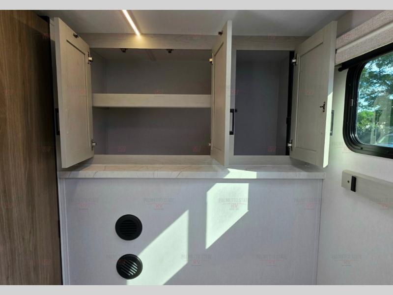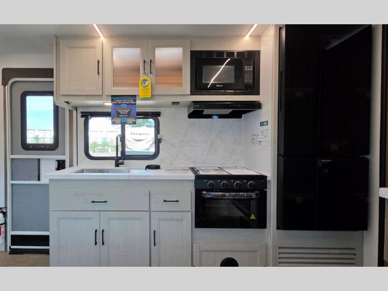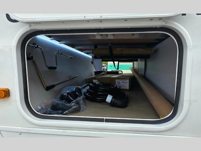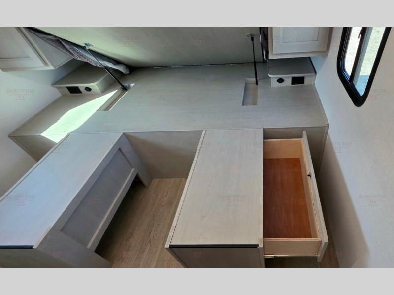 This travel trailer will feel just like home with its private bedroom and spacious full rear bath. You will appreciate the vaulted under-bed storage for extra blankets, shoes, and luggage, plus there are dual wardrobes on either side of the bed for your book and glasses. Get comfortable in the main living area on the sofa or at the booth dinette, or you can choose the optional theater seat or optional hide-a-bed sofa in place of the standard sofa. The chef of your group can prepare meals indoors or outdoors on the full camp kitchen, and check out the large 20' power awning with LED lights that will provide protection from the elements.