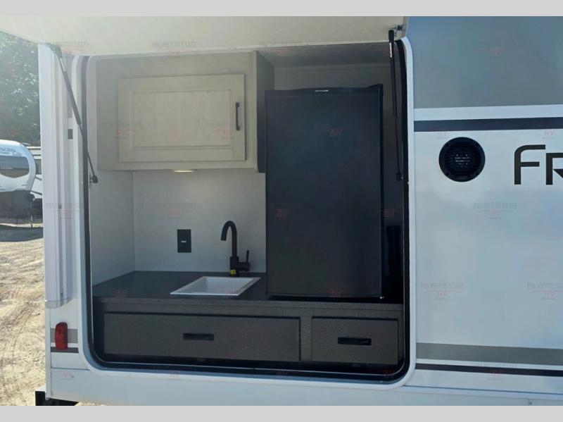 With any Freedom Express Ultra Lite travel trailer by Coachmen you will appreciate quality construction materials, such as vacuum bonded walls with Azdel composite, a 3/4 gel coated fiberglass cap with an automotive glass windshield, and a heated enclosed underbelly. Each model also features Tufflex PVC roofing, front rock guard, and E-Z Lube axles for smooth towing. Inside, you'll find kitchen backsplash, hidden hinge cabinetry, and wear-resistant vinyl flooring throughout. The power tongue jack included with the Ultra Lite Express Package will make set-up a breeze, and each model includes back-up camera prep and they are Freedom solar ready if you plan to go off-grid. Enjoy lightweight camping with a Freedom Express Ultra Lite travel trailer today!